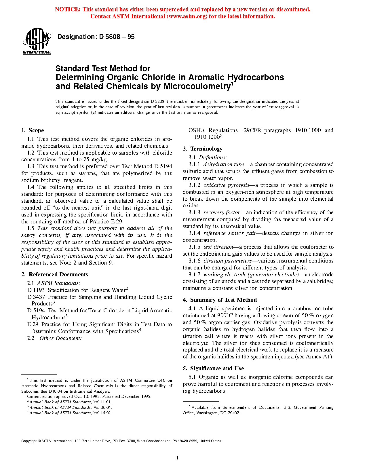 5.2 Maximum chloride levels are often specified for process streams and for hydrocarbon products.
