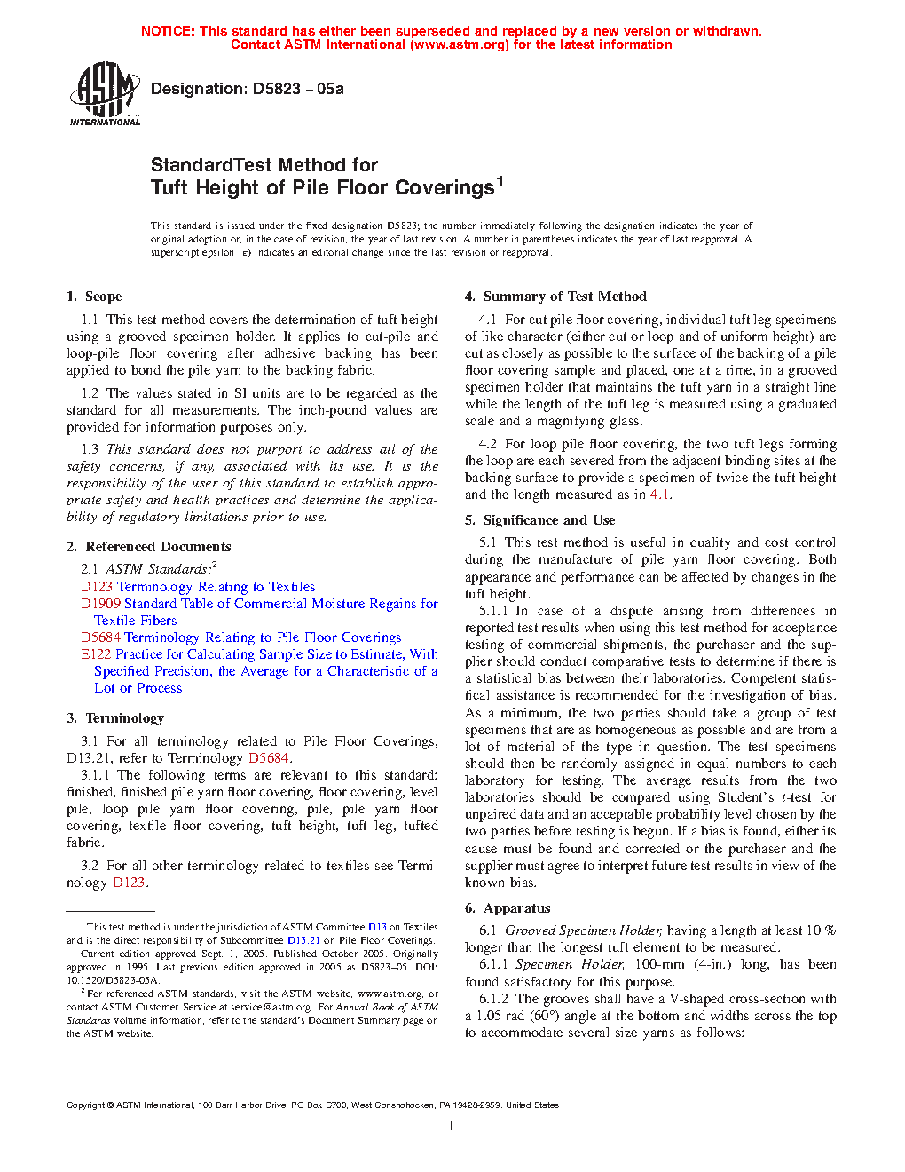 5.1 This test method is useful in quality and cost control during the manufacture of pile yarn floor covering. Both appearance and performance can be affected by changes in the tuft height.