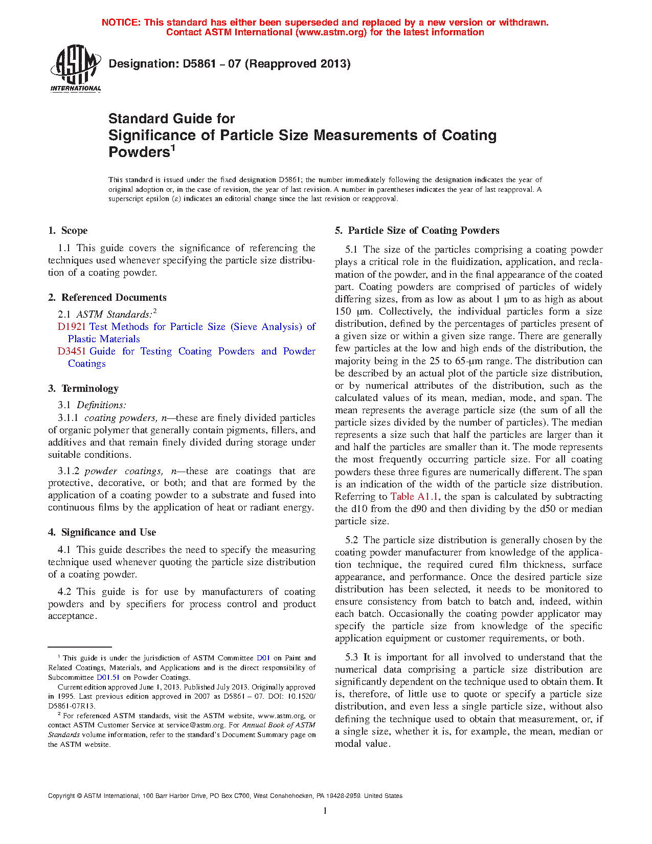 1.1 This guide covers the significance of referencing the techniques used whenever specifying the particle size distribution of a coating powder.
