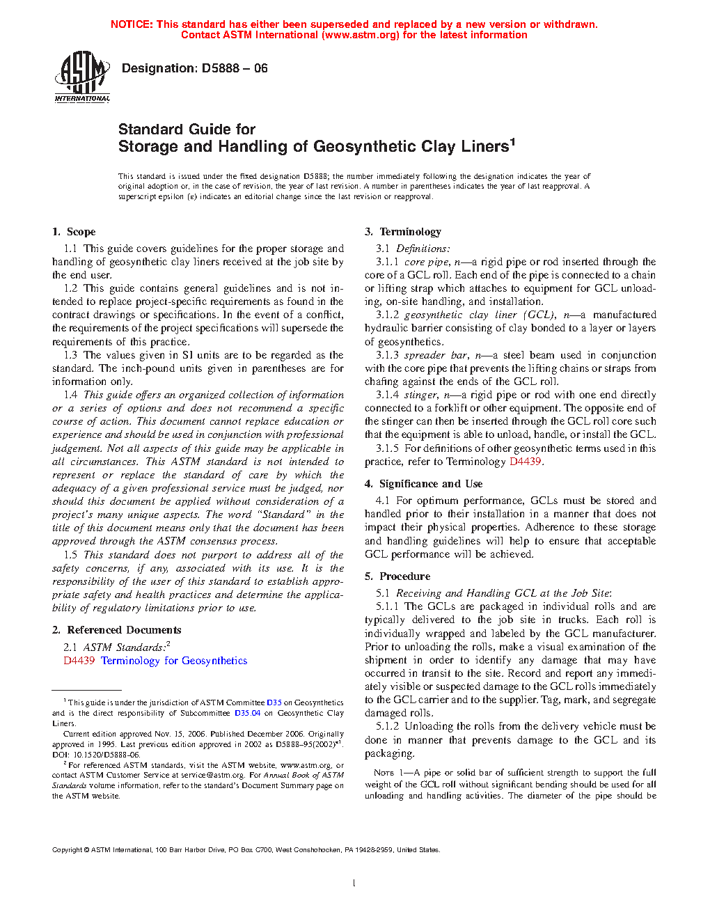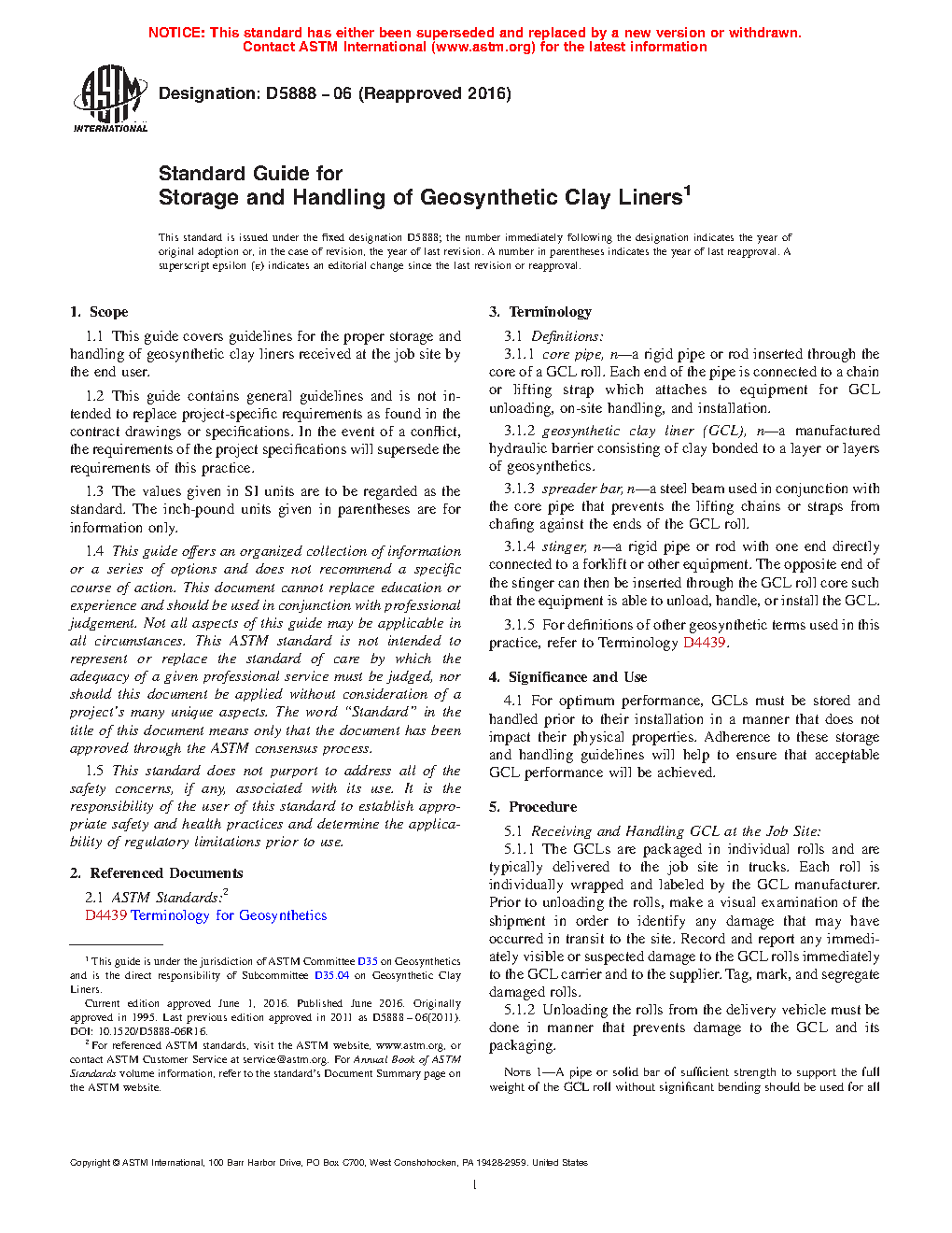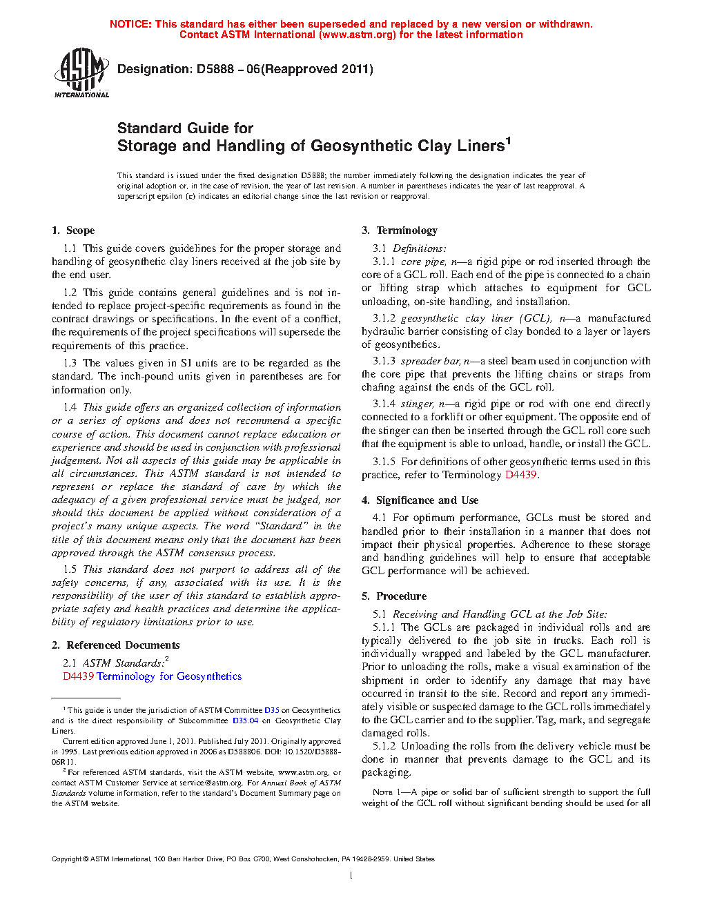 4.1 For optimum performance, GCLs must be stored and handled prior to their installation in a manner that does not impact their physical properties. Adherence to these storage and handling guidelines will help to ensure that acceptable GCL performance will be achieved.