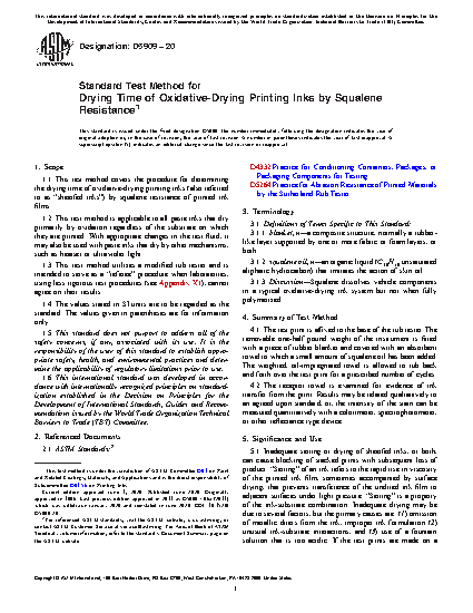 1.1 This test method covers the procedure for determining the drying time of oxidative-drying printing inks (also referred to as “sheetfed inks”) by squalene resistance of printed ink films.