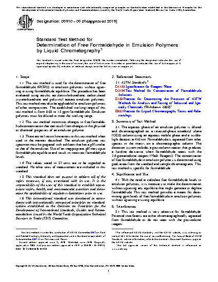 1.2 This test method minimizes changes in free formaldehyde concentration that can result from changes in the physical or chemical properties of an emulsion polymer.