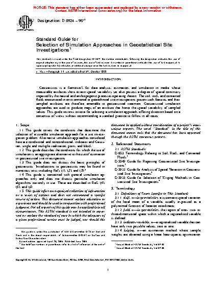 4.1 This guide is intended to encourage consistency and thoroughness in the application of geostatistical simulation to environmental, geotechnical, and hydrogeological site investigations.