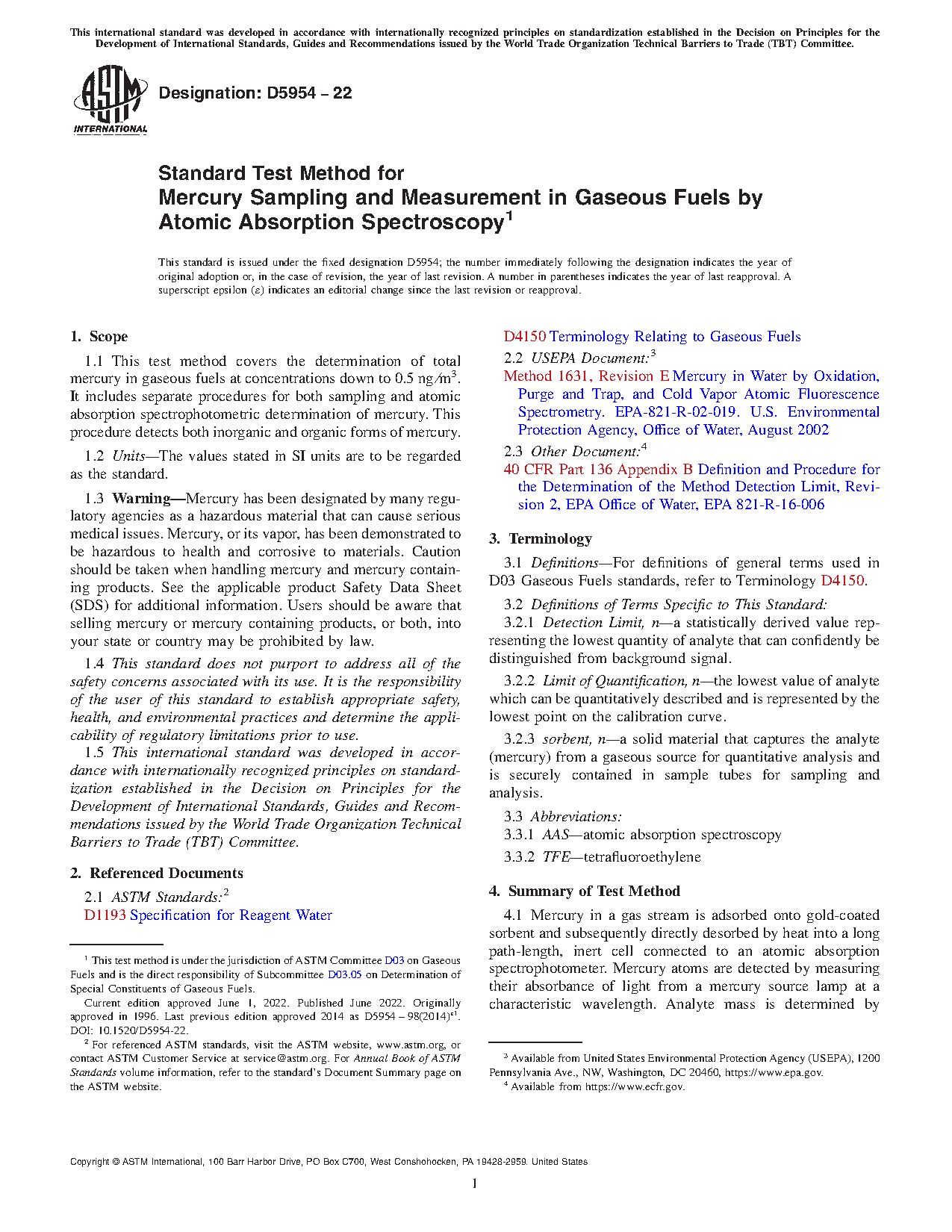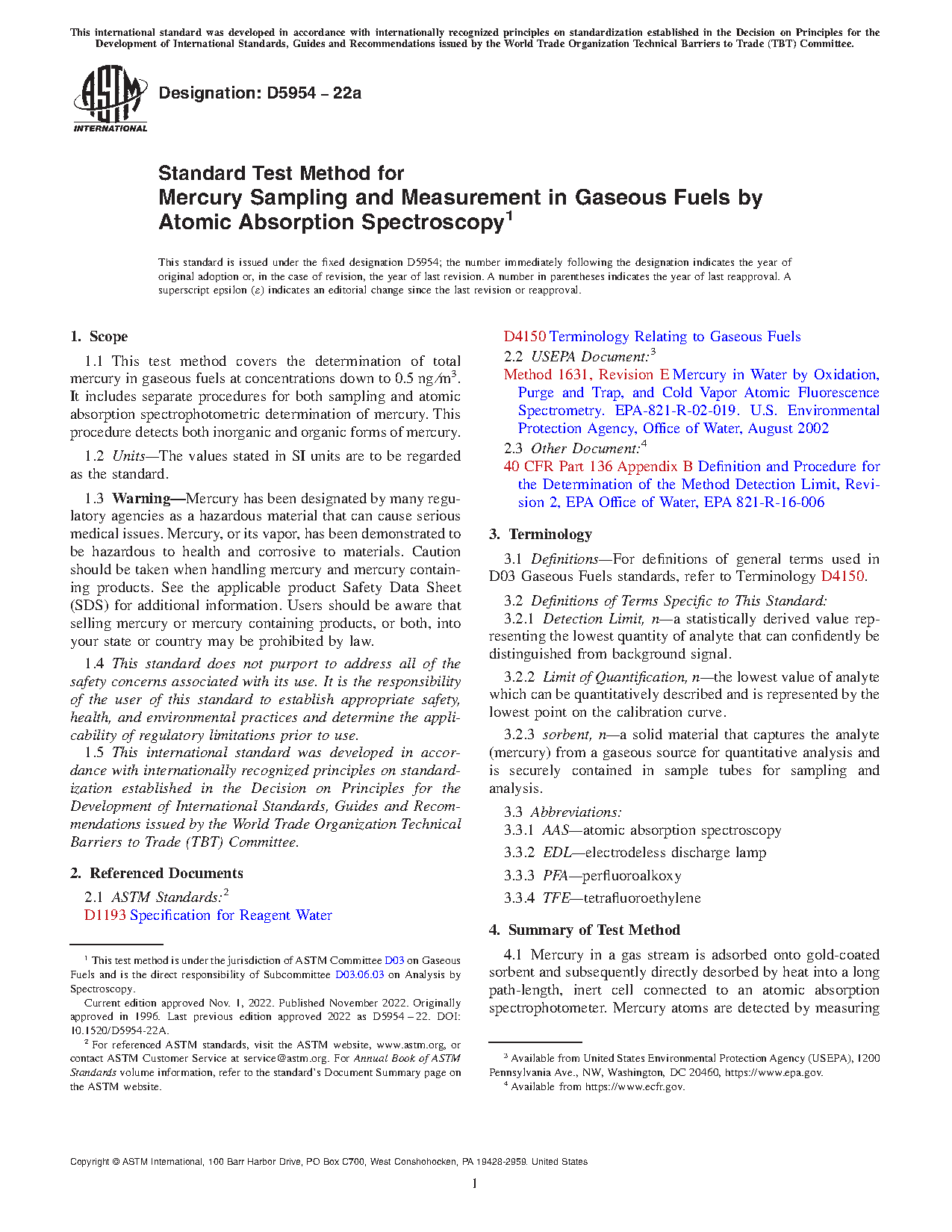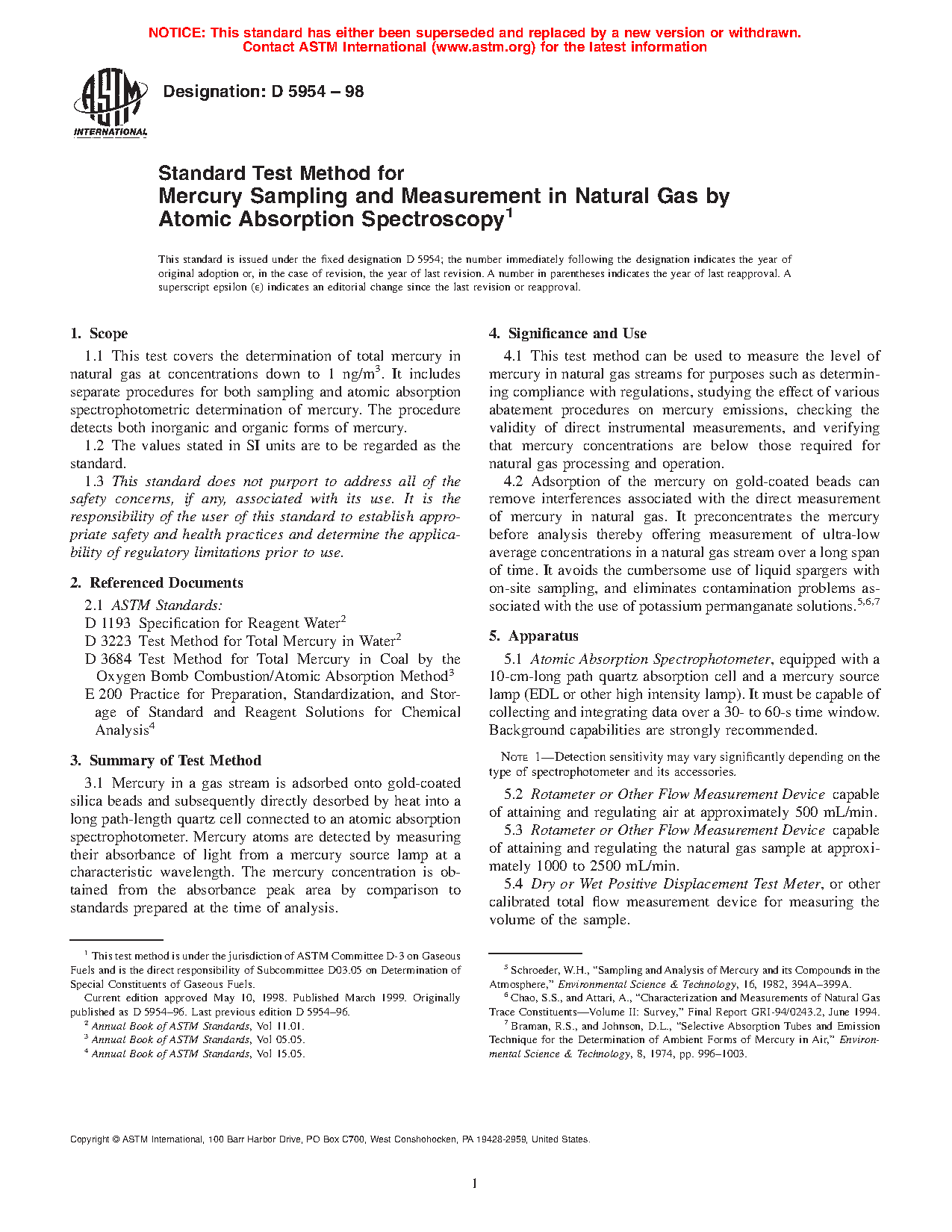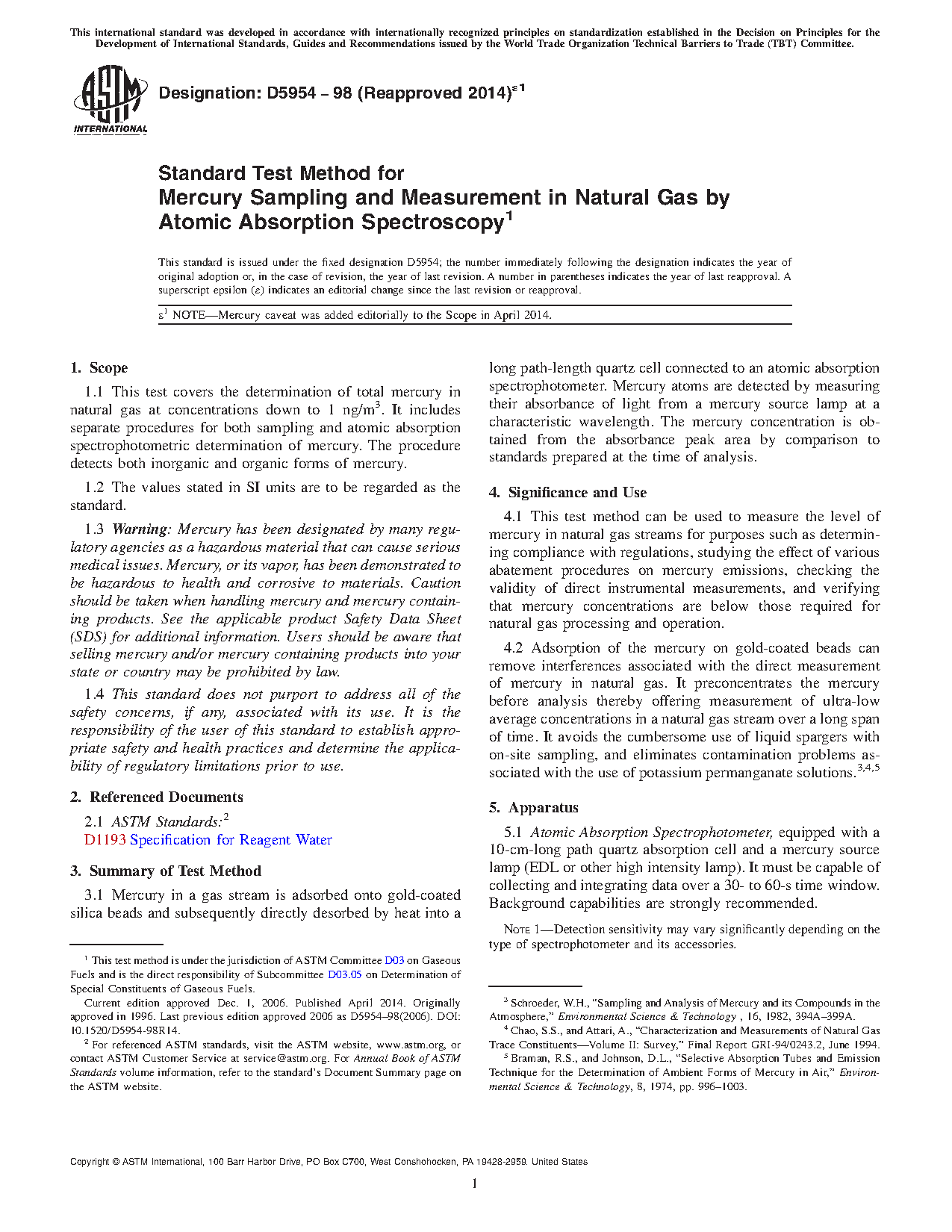 Standard Test Method for Mercury Sampling and Measurement in Natural Gas by Atomic Absorption Spectroscopy