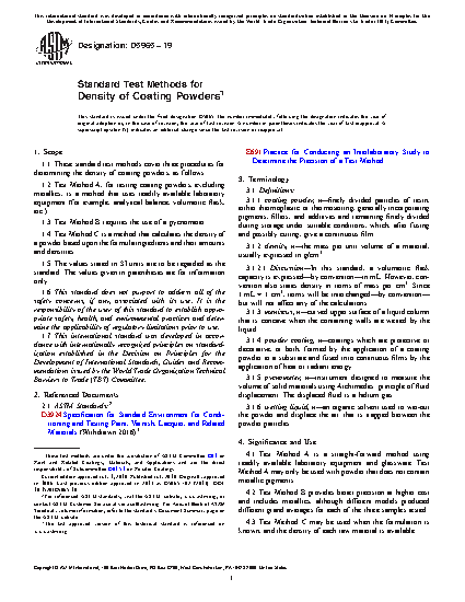 1.1 These standard test methods cover three procedures for determining the density of coating powders, as follows: