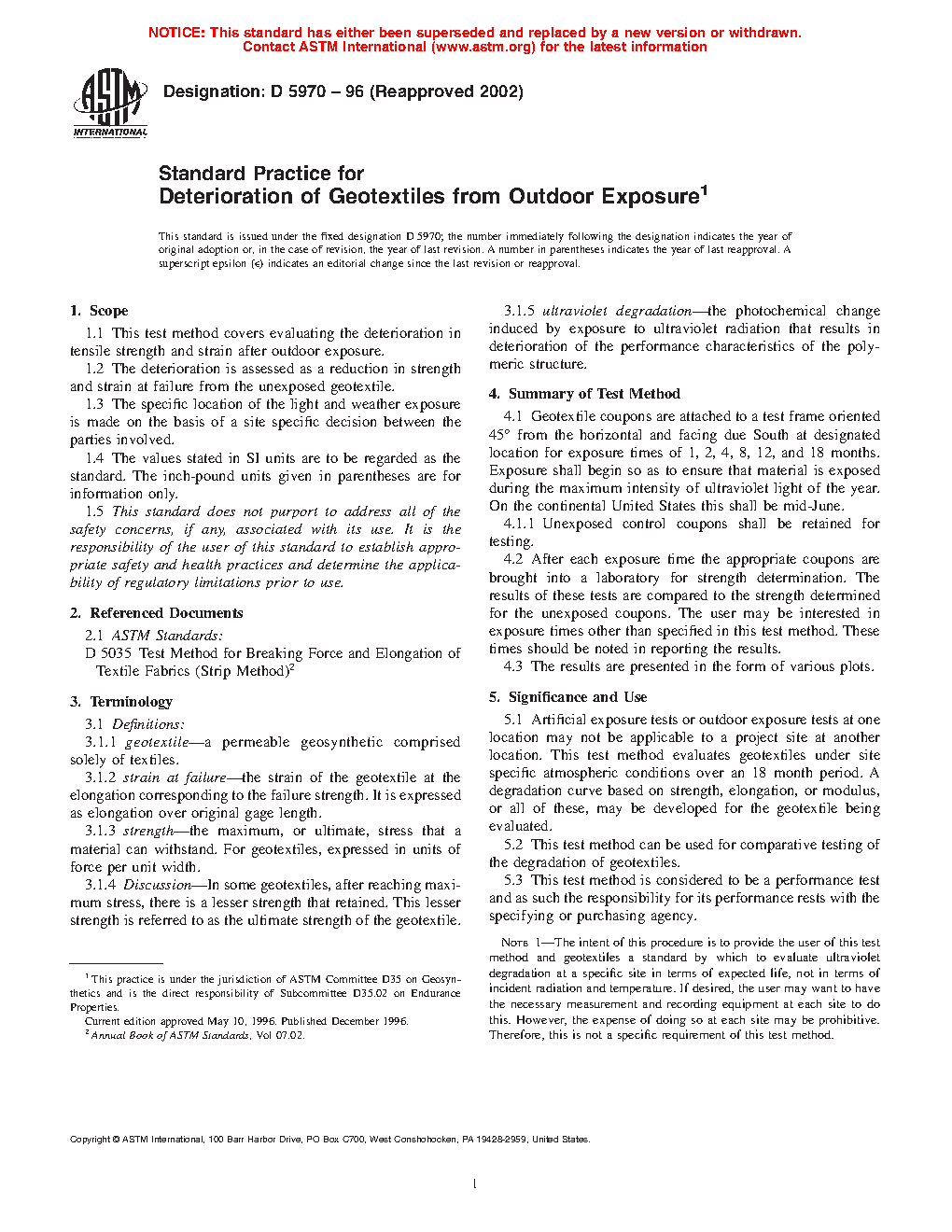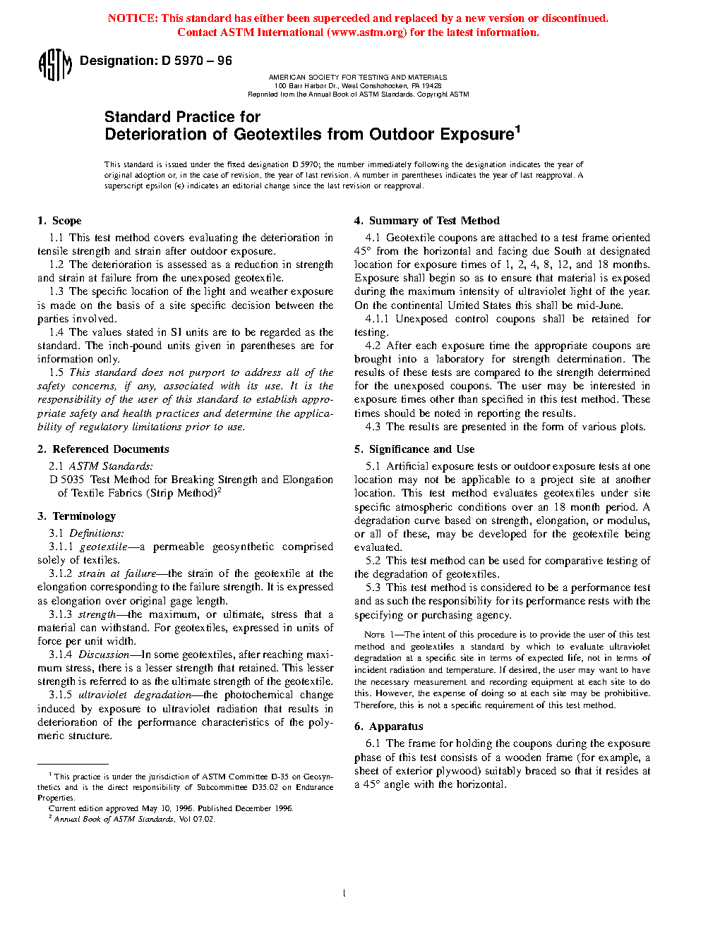 This test method can be used for comparative testing of the degradation of geotextiles.
