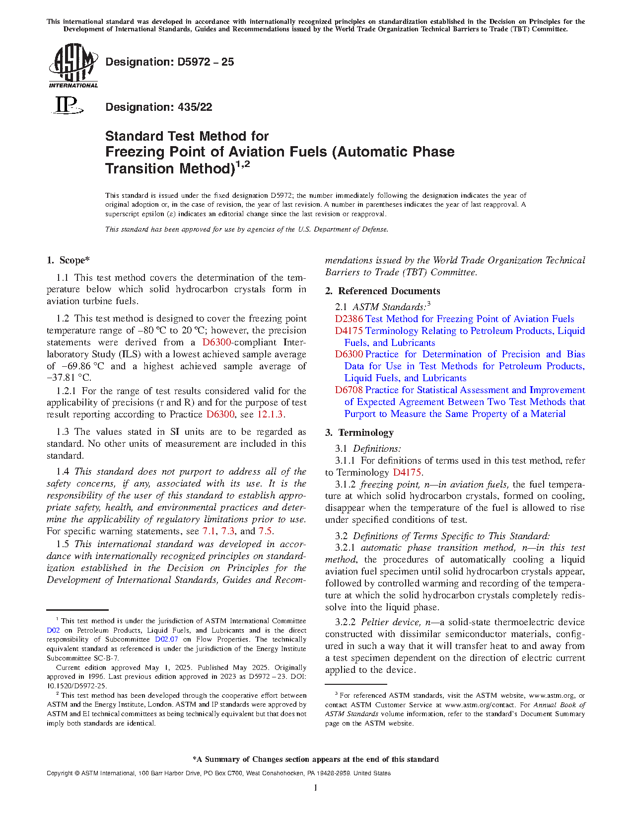 1.2 This test method is designed to cover the temperature range of 80 to 20°C; however, the ASTM interlaboratory study mentioned in 12.4 has only demonstrated the test method with fuels having freezing points in the range of 45 to 65°C.