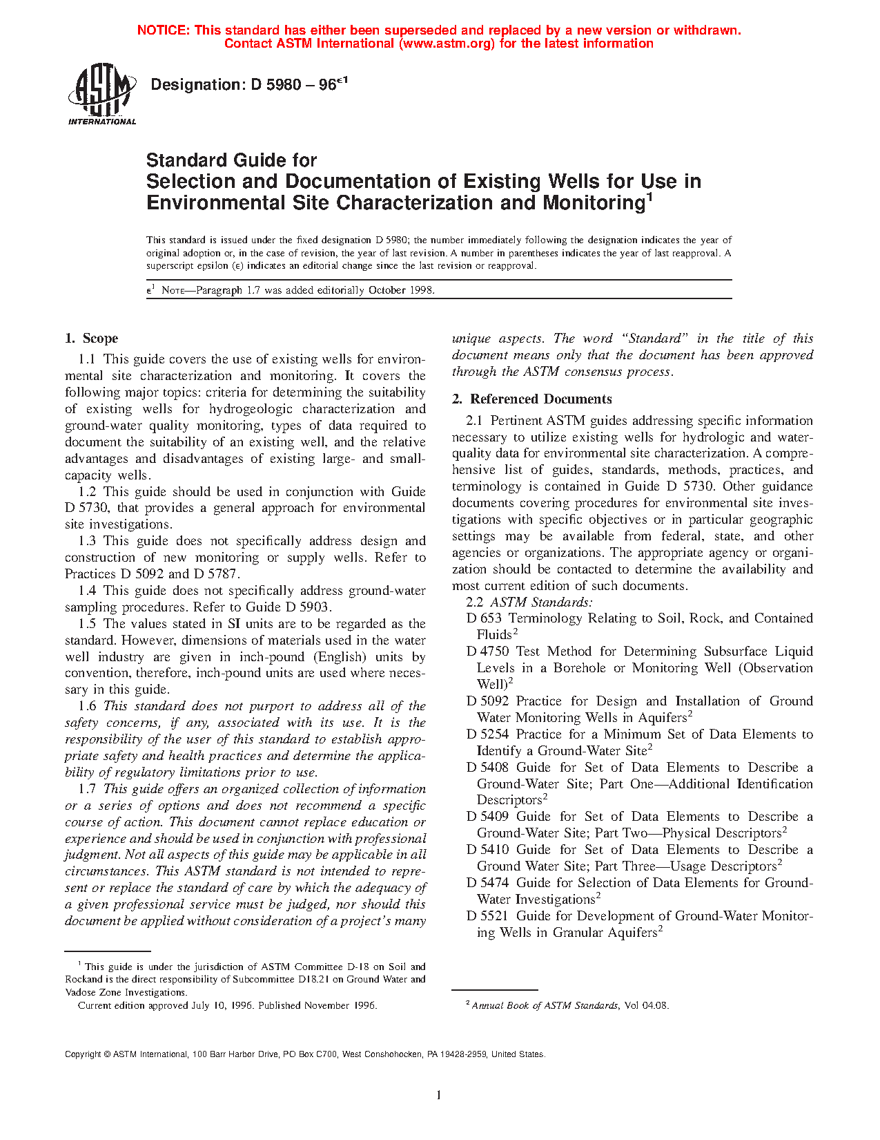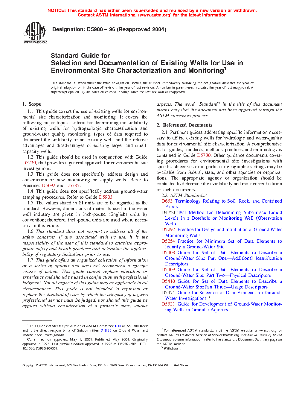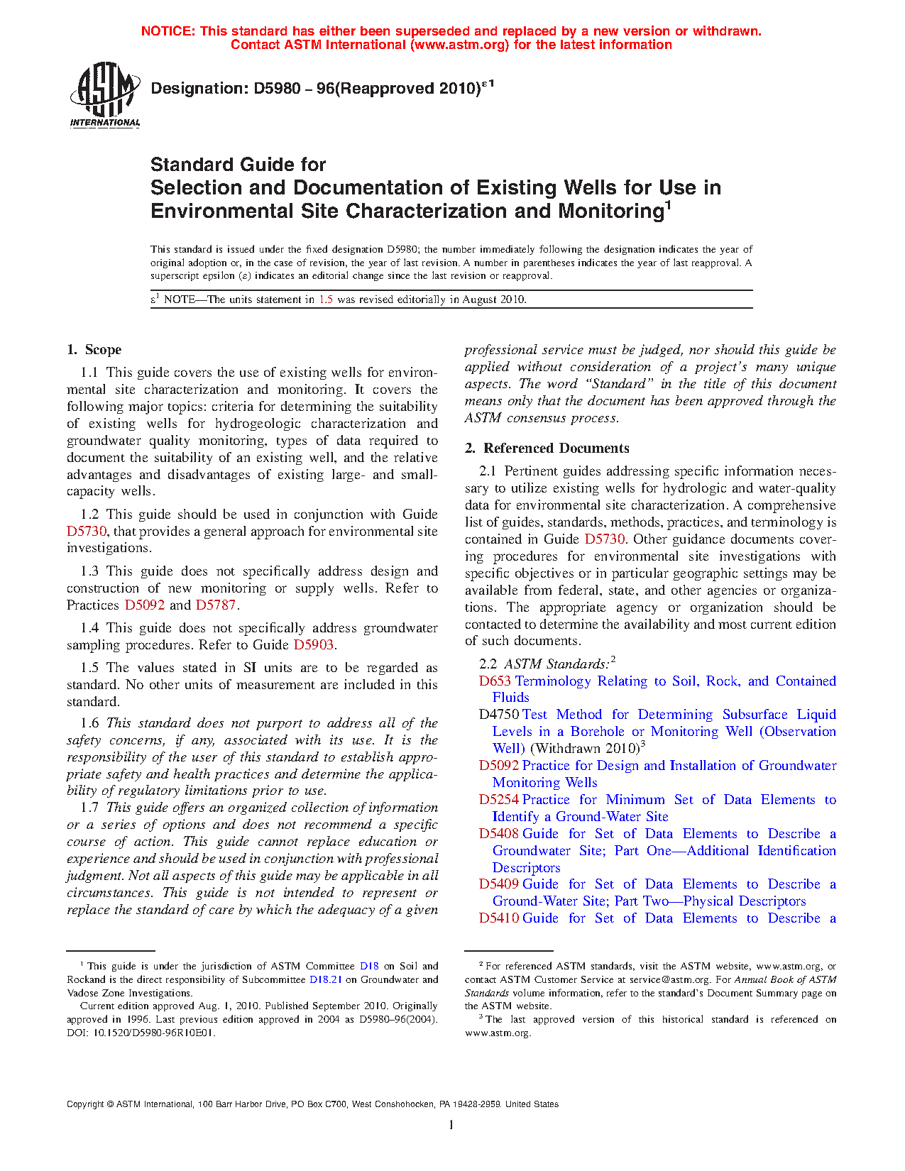 1.3 This guide does not specifically address design and construction of new monitoring or supply wells. Refer to Practices D5092 and D5787.