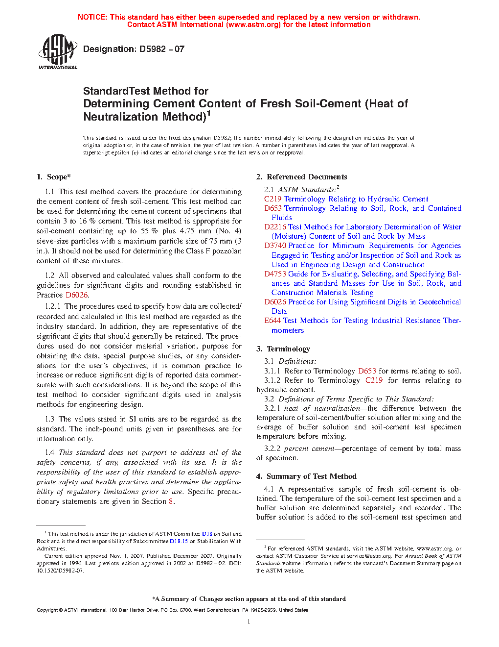 5.1 This procedure provides a means for reliably determining the cement content of soil-cement in approximately 15 to 20 min. The procedure can be used to determine the cement content of soil-cement to ±1 percentage point by mass of dry sample of the actual cement content, that is generally adequate for most construction control applications.