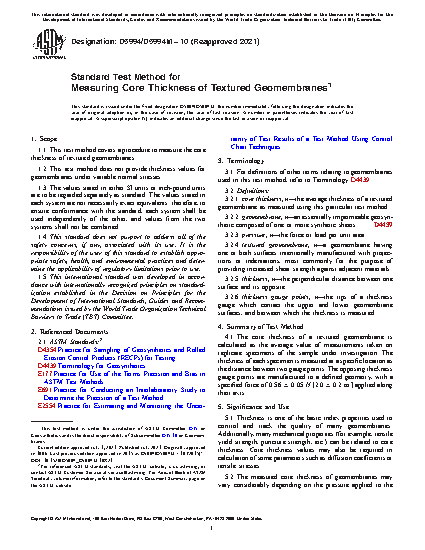 1.1 This test method covers a procedure to measure the core thickness of textured geomembranes.