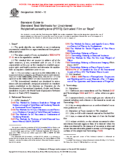 1.1 This guide identifies test methods to use in evaluating unsintered extruded films or tapes manufactured from polytetrafluoroethylene.