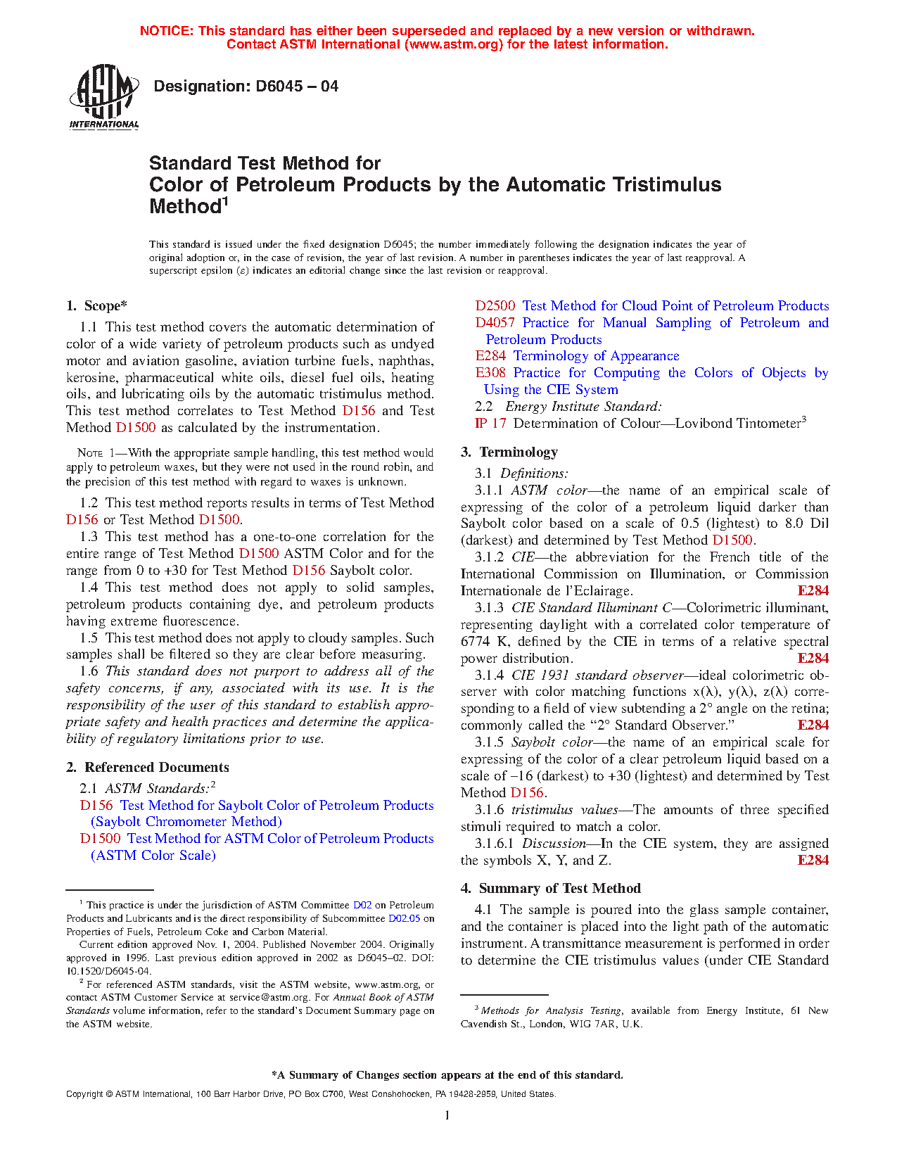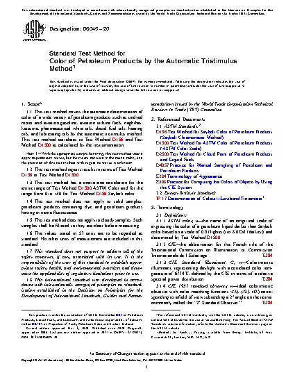 1.3 This test method has a one-to-one correlation for the entire range of Test Method D 1500 ASTM Color and for the range from 0 to +30 for Test Method D 156 Saybolt color.