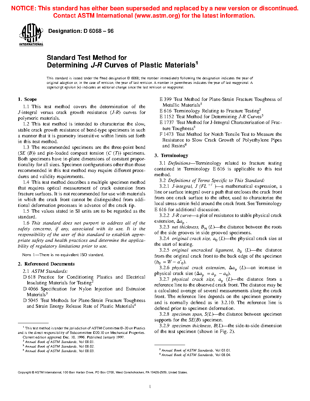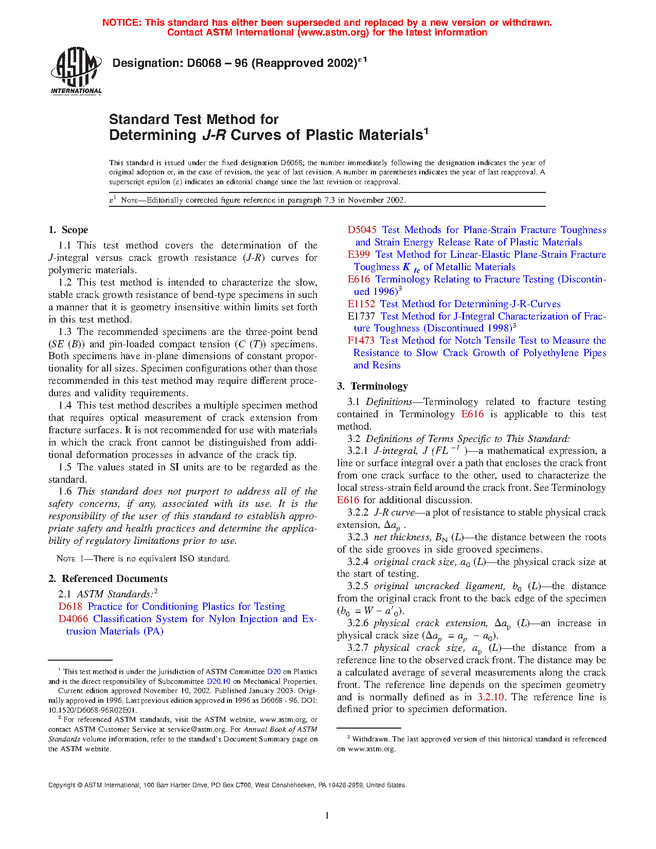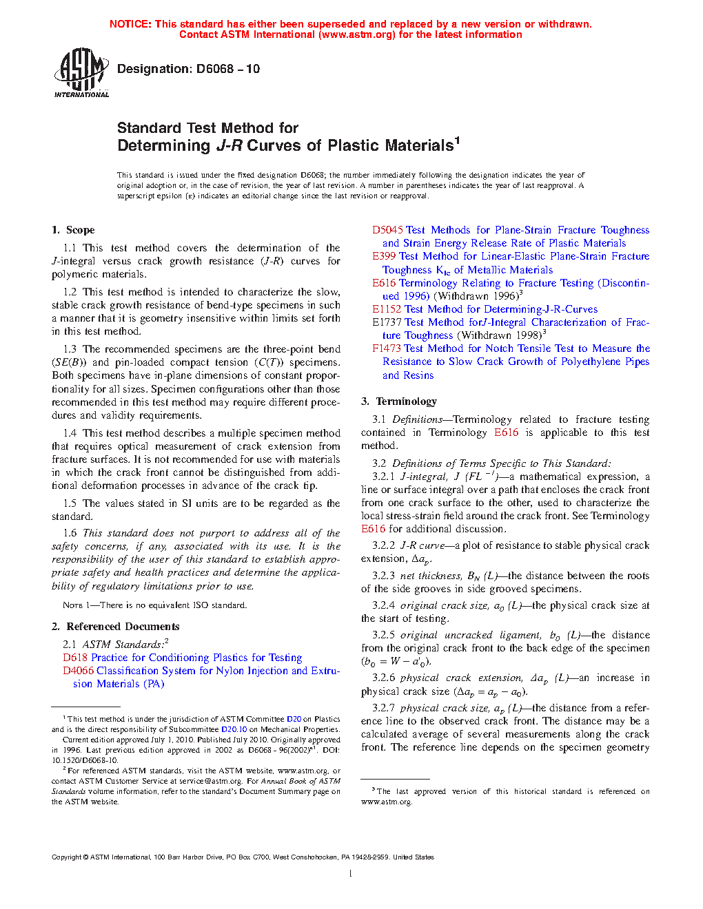 1.1 This test method covers the determination of the J-integral versus crack growth resistance (J-R) curves for polymeric materials.