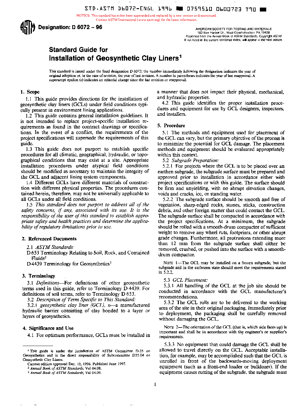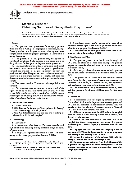 Standard Guide for Obtaining Samples of Geosynthetic Clay Liners