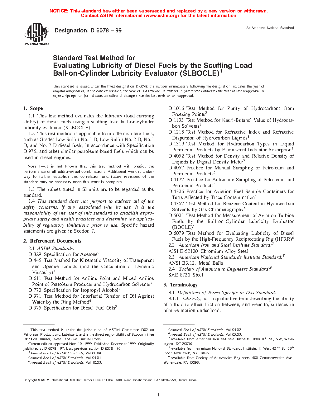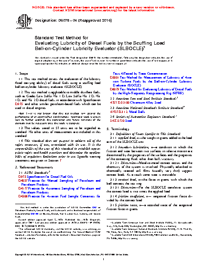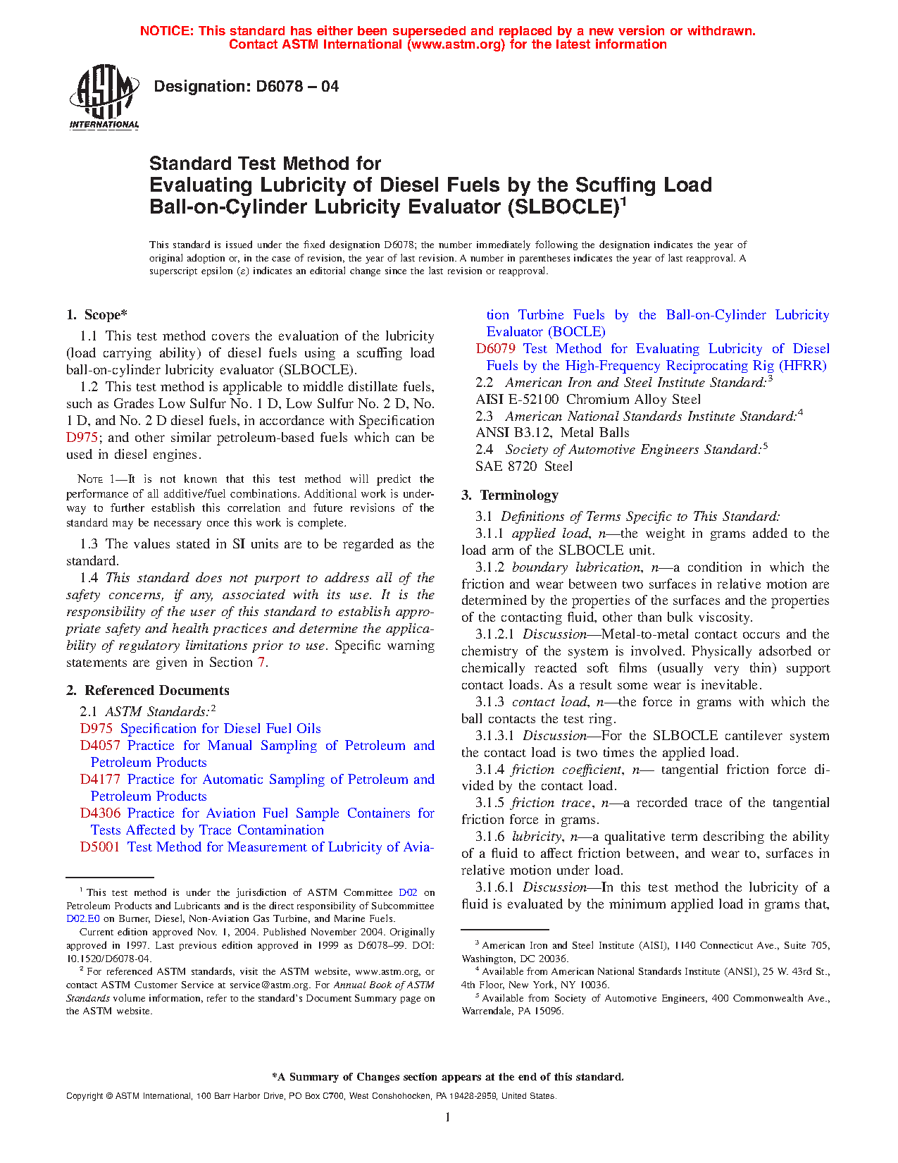 5.5 The SLBOCLE may be used to evaluate the relative effectiveness of diesel fuels for preventing wear under the prescribed test conditions. If a standard SLBOCLE rating has been set, then the single-load test provides a more rapid evaluation than the incremental load test. Correlation of SLBOCLE test results with field performance of diesel fuel injection systems has not yet been determined.