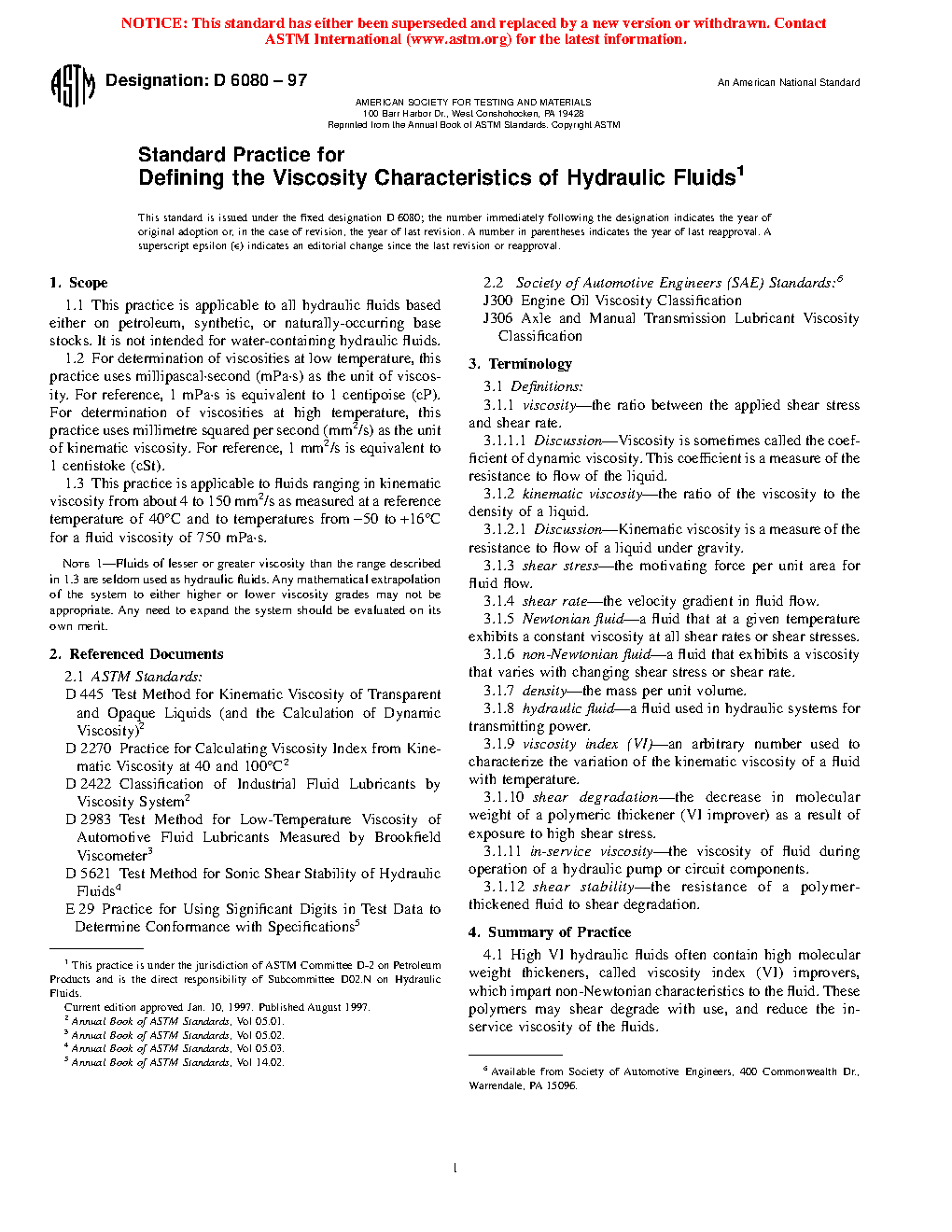 Note 1: Fluids of lesser or greater viscosity than the range described in 1.3 are seldom used as hydraulic fluids. Any mathematical extrapolation of the system to either higher or lower viscosity grades may not be appropriate. Any need to expand the system should be evaluated on its own merit.