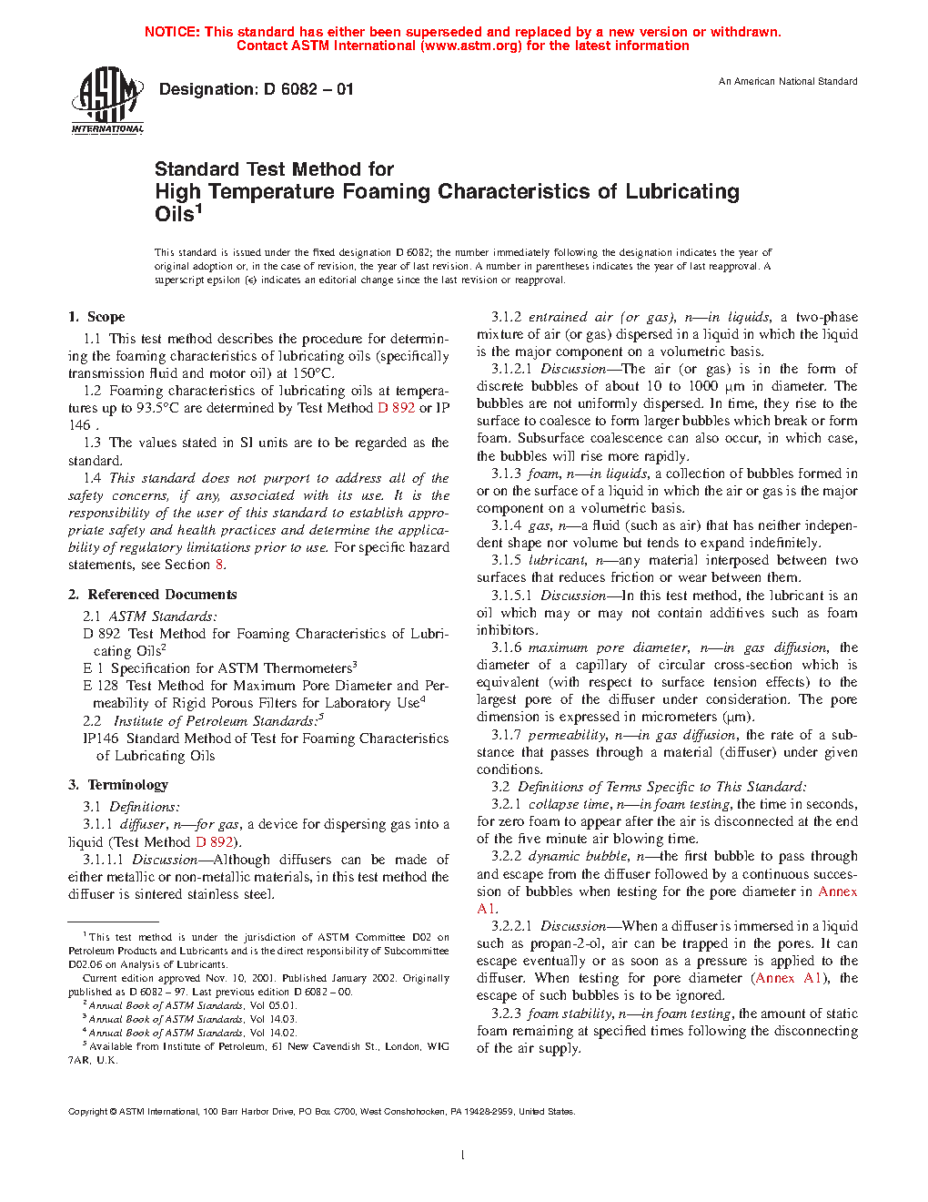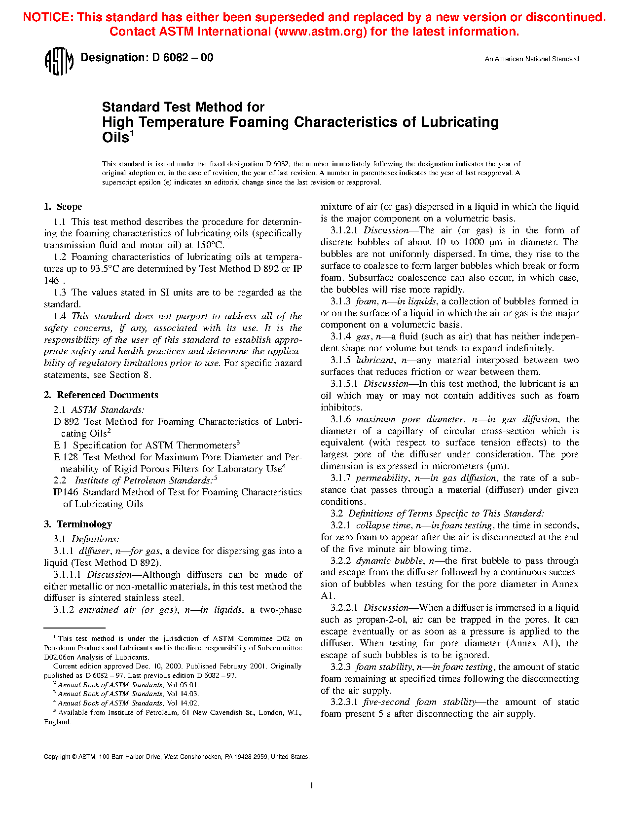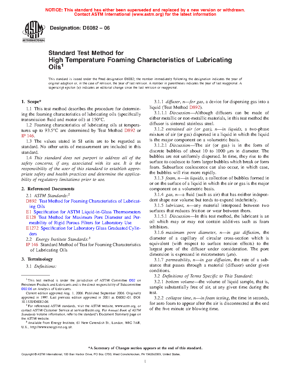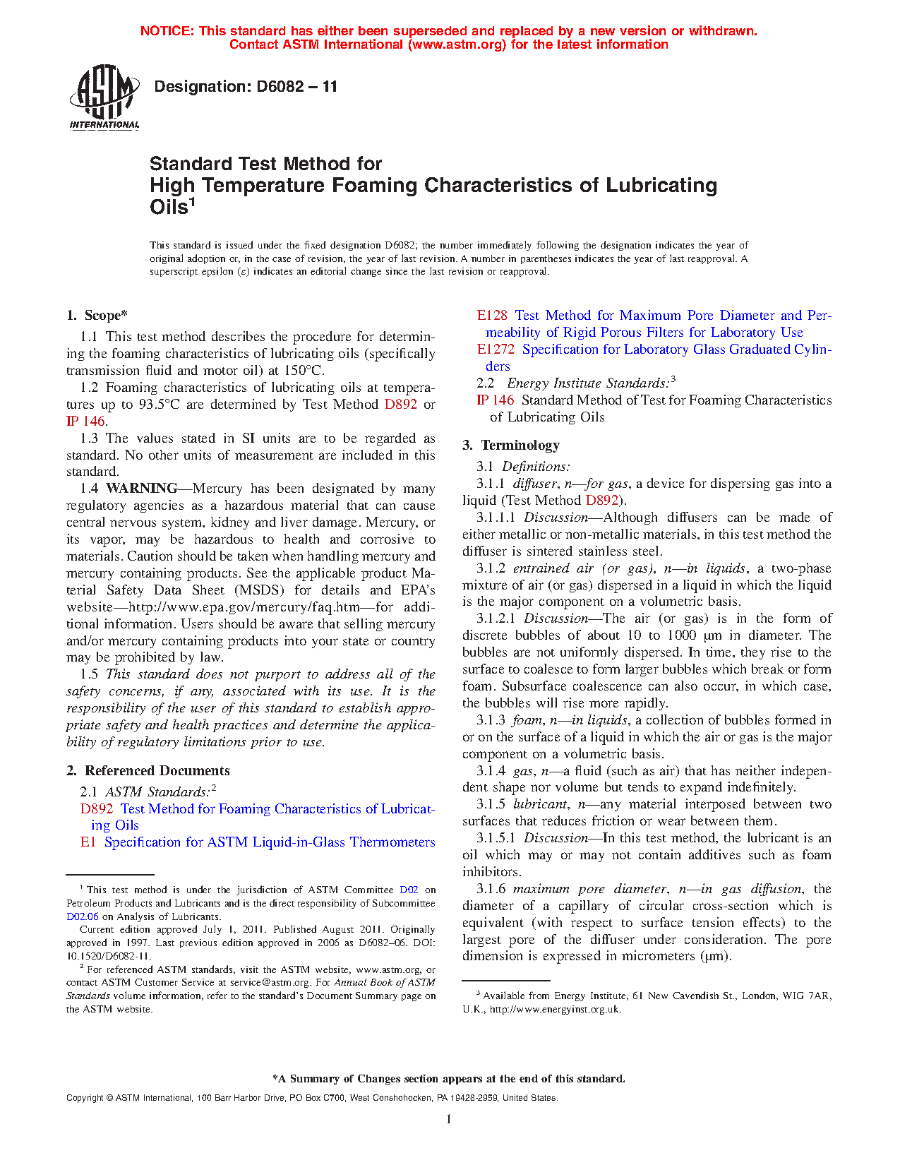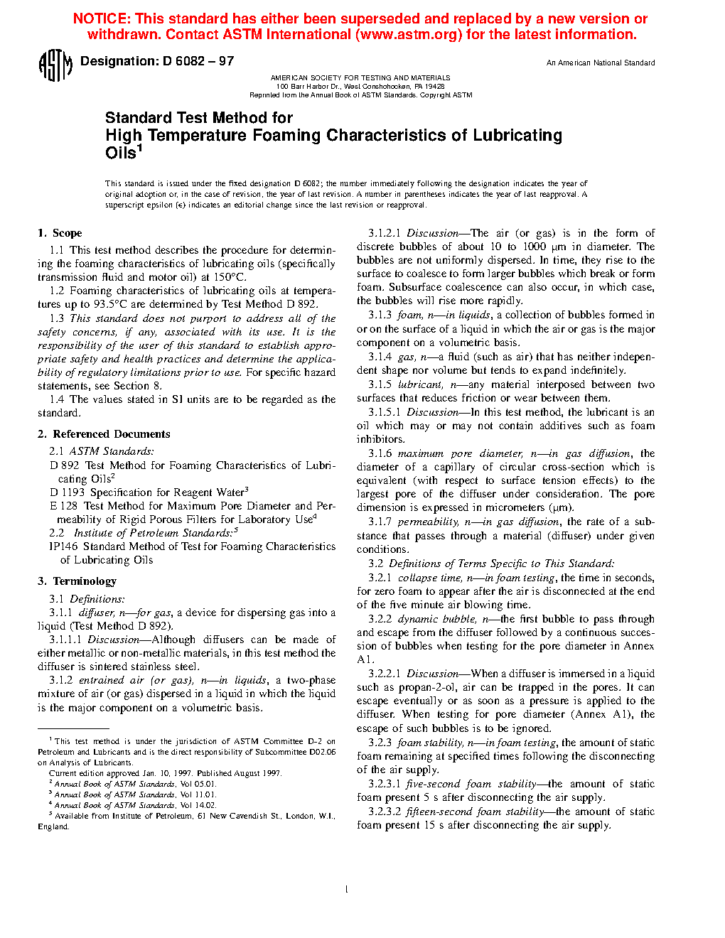 1.2 Foaming characteristics of lubricating oils at temperatures up to 93.5 °C are determined by Test Method D892 or IP 146.