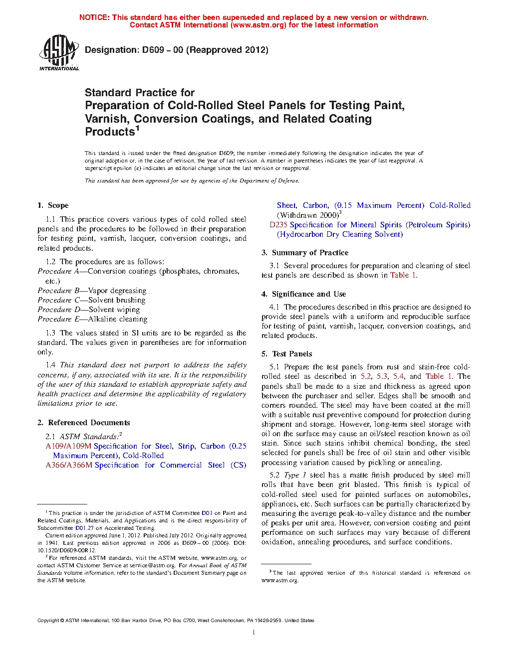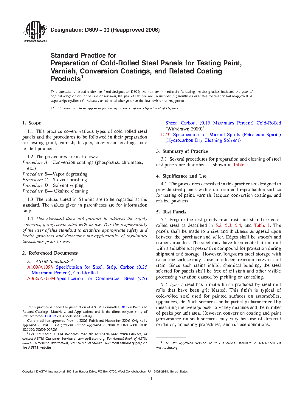 1.1 This practice covers various types of cold rolled steel panels and the procedures to be followed in their preparation for testing paint, varnish, lacquer, conversion coatings, and related products.