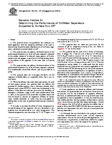 Another purpose of this practice is to establish that a separator containing oil at its rated capacity would still be capable of meeting the above criteria when subjected to run-off.