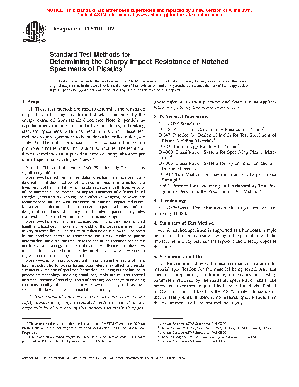 Note 2: The specimens are standardized in that they have a fixed length and fixed depth, however, the width of the specimens is permitted to vary between limits. One design of milled notch is allowed. The notch in the specimen serves to concentrate the stress, minimize plastic deformation, and direct the fracture to the part of the specimen behind the notch. Scatter in energy-to-break is thus reduced. Because of differences in the elastic and viscoelastic properties of plastics, however, response to a given notch varies among materials.