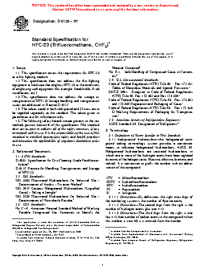 1.1 This specification covers the requirements for HFC-23 as a fire fighting medium.