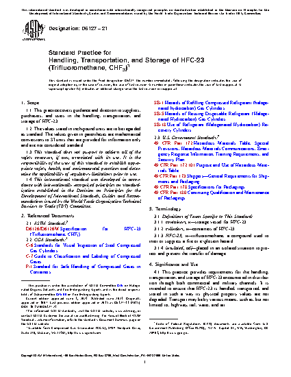 1.1 This practice covers guidance and direction to suppliers, purchasers, and users in the handling, transportation, and storage of HFC-23.