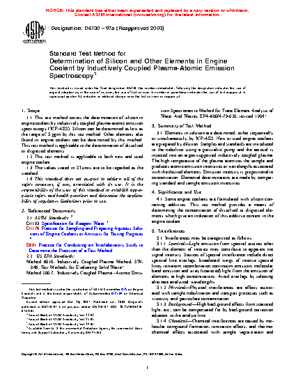 4.1 Some engine coolants are formulated with silicon containing additives. This test method provides a means of determining the concentration of dissolved or dispersed elements which give an indication of this additive content in the engine coolant.