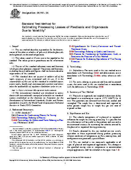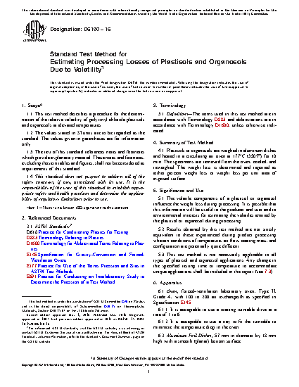 1.1 This test method describes a procedure for the determination of the relative volatility of polyvinyl chloride plastisols and organosols at elevated temperatures.