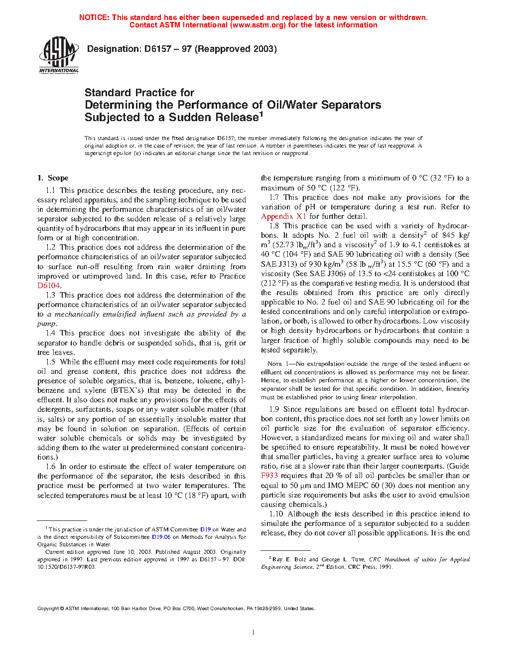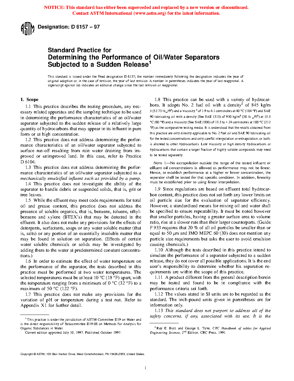 This practice is not applicable if the influent to a separator is simply runoff from contaminated rainwater. For this case, see Practice D6104.