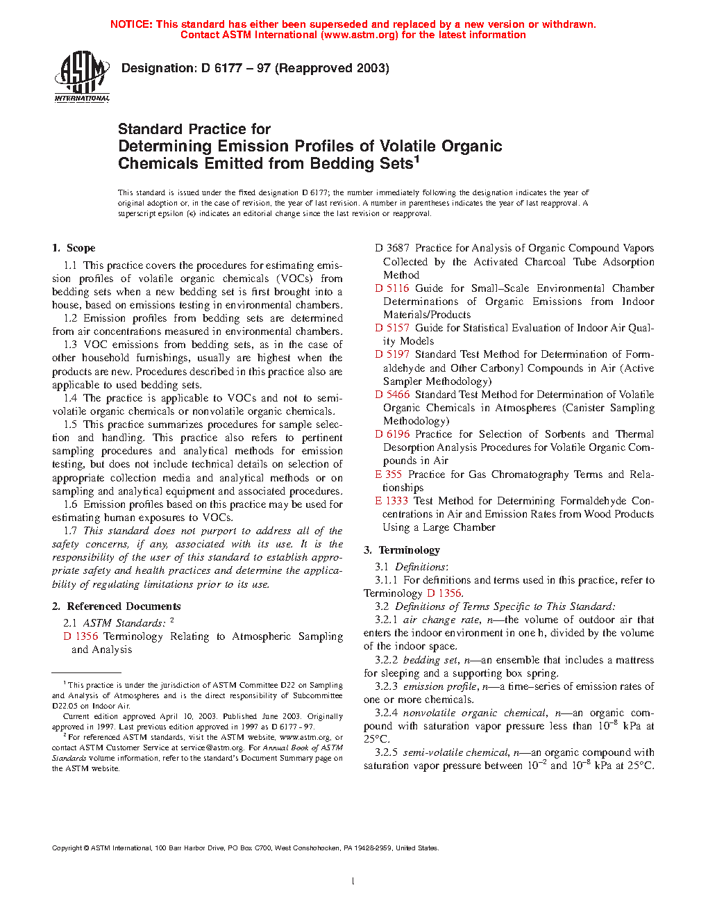 1.3 VOC emissions from bedding sets, as in the case of other household furnishings, usually are highest when the products are new. Procedures described in this practice also are applicable to used bedding sets.