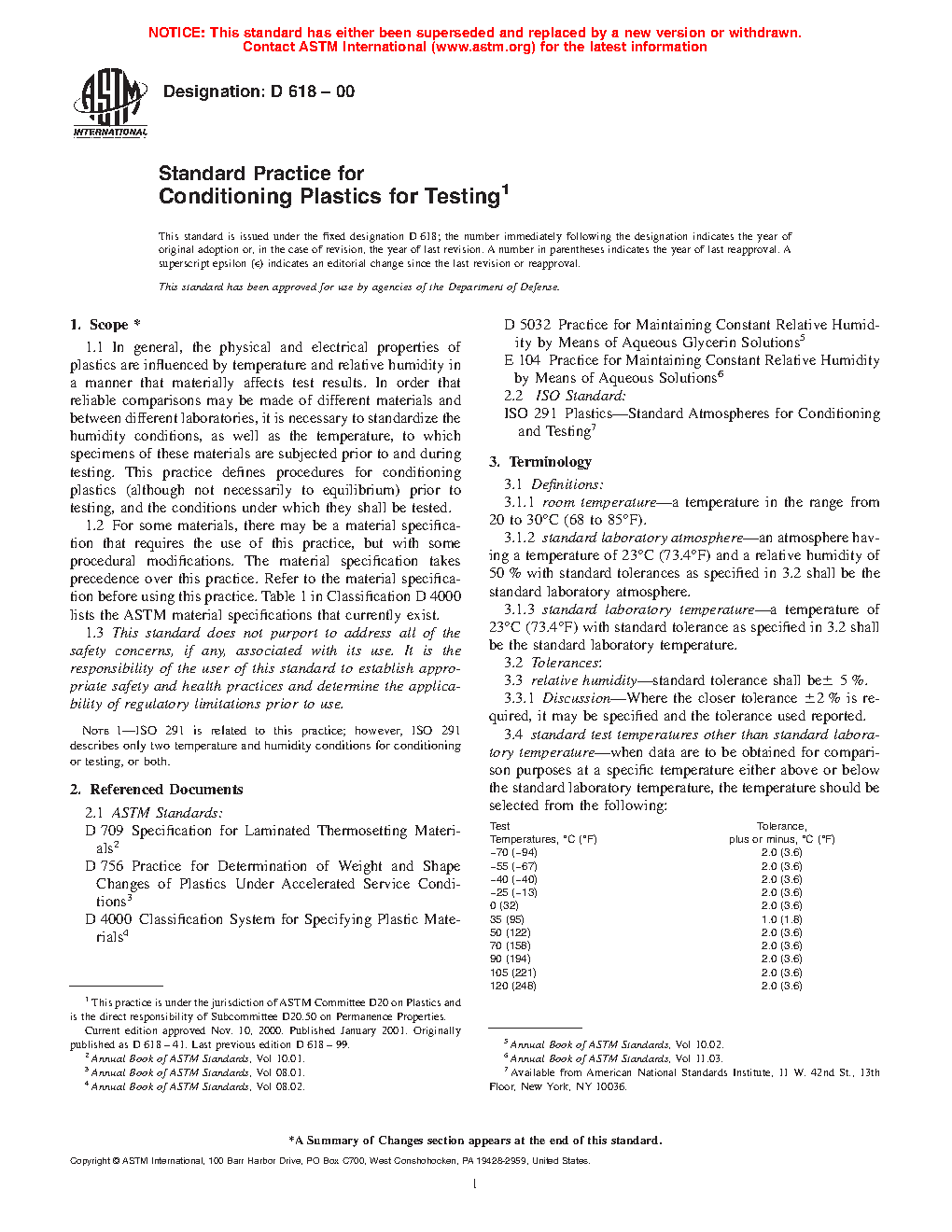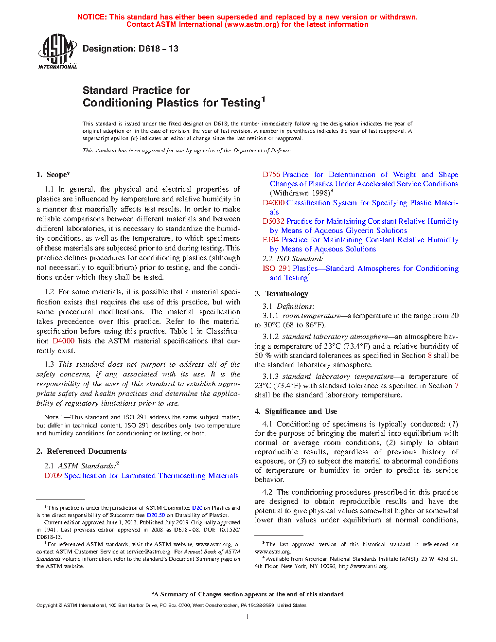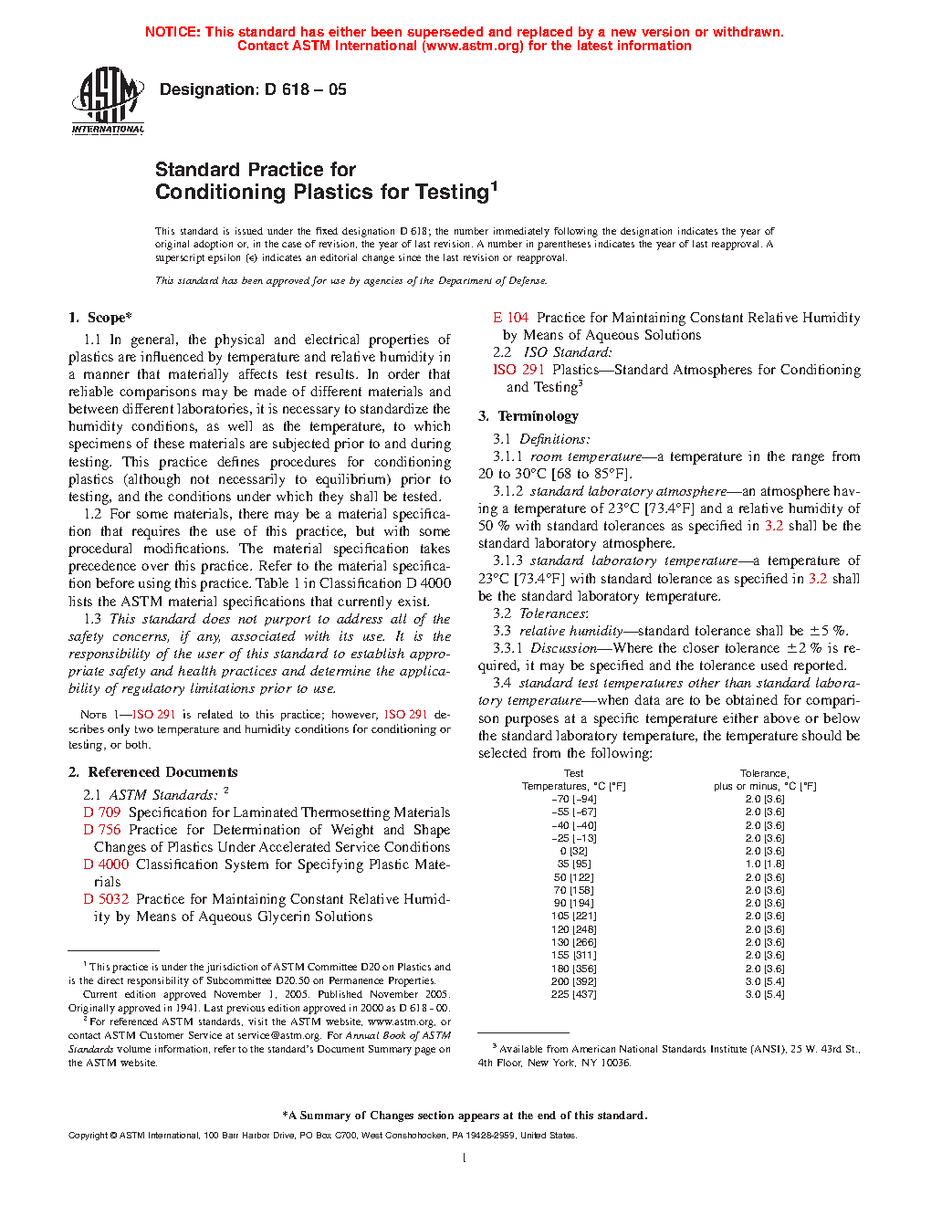 1.3 This standard does not purport to address all of the safety concerns, if any, associated with its use. It is the responsibility of the user of this standard to establish appropriate safety and health practices and determine the applicability of regulatory limitations prior to use. Note 1—This standard and ISO 291 address the same subject matter, but differ in technical content. ISO 291 describes only two temperature and humidity conditions for conditioning or testing, or both.