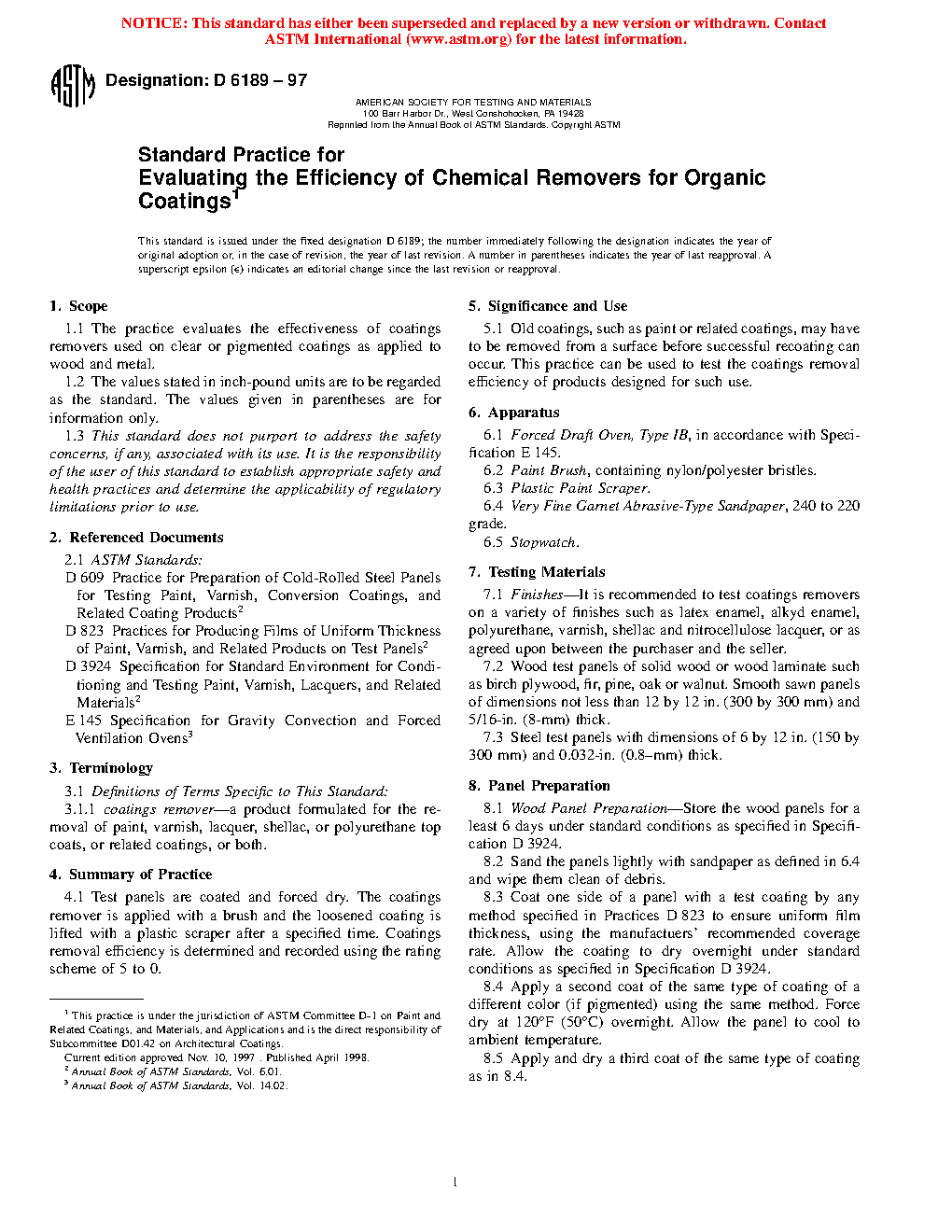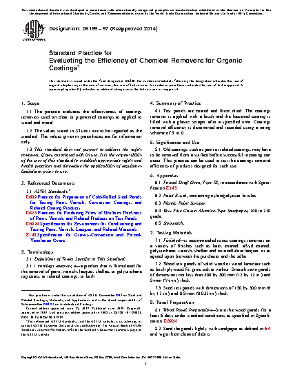 1.1 The practice evaluates the effectiveness of coatings removers used on clear or pigmented coatings as applied to wood and metal.