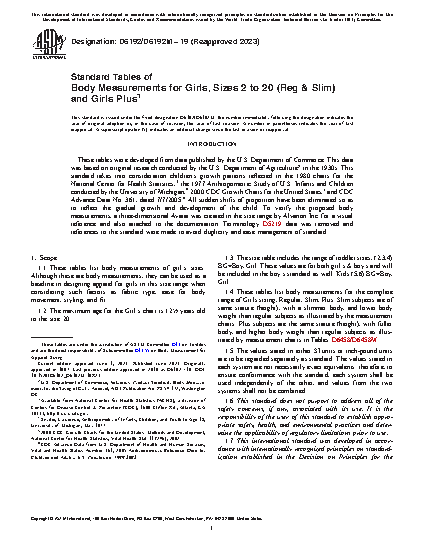 1.1 These tables list body measurements of girl’s sizes. Although these are body measurements, they can be used as a baseline in designing apparel for girls in this size range when considering such factors as fabric type, ease for body movement, styling, and fit.