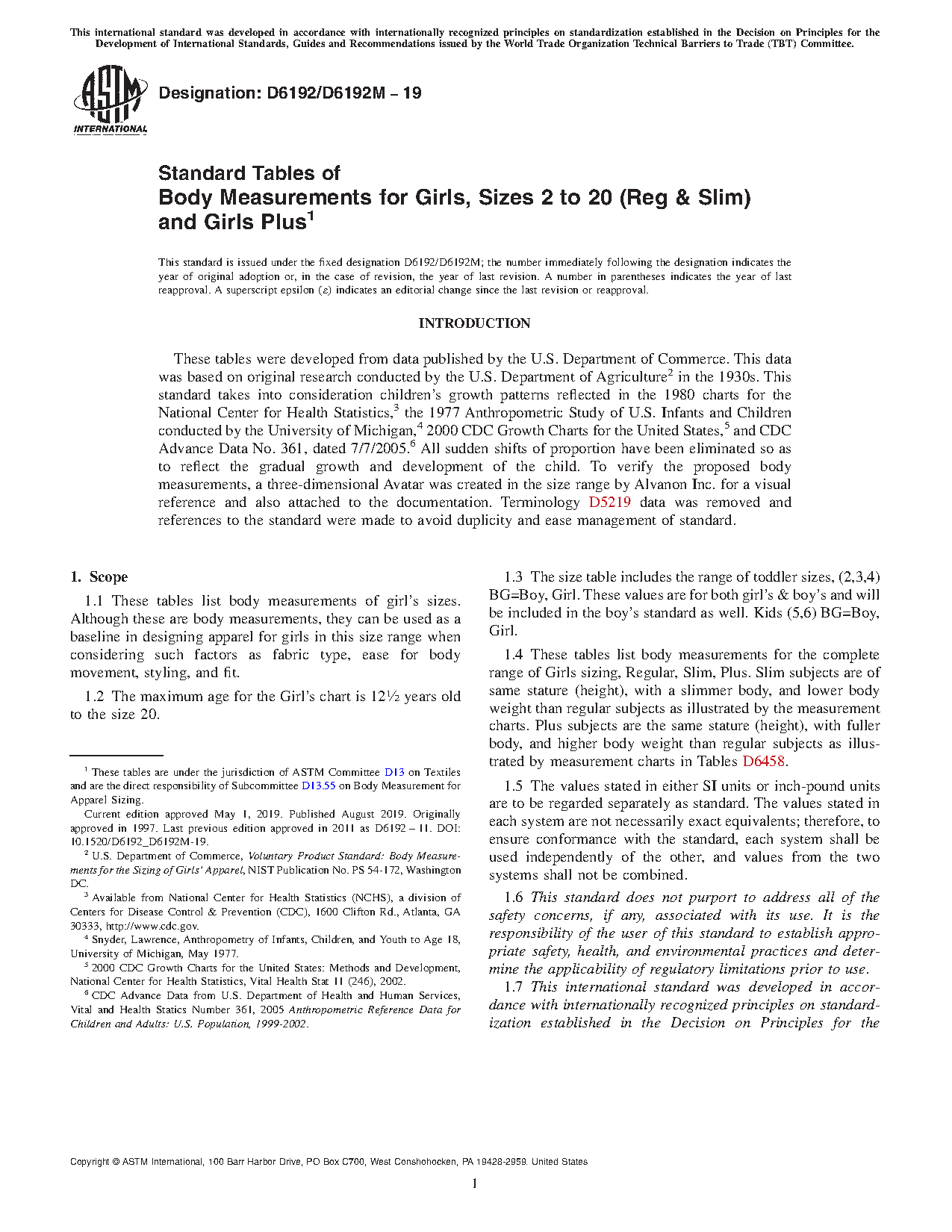 1.1 These tables list body measurements of girl’s sizes. Although these are body measurements, they can be used as a baseline in designing apparel for girls in this size range when considering such factors as fabric type, ease for body movement, styling, and fit.
