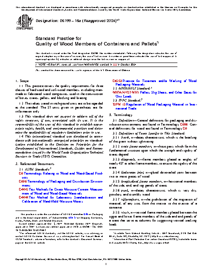 1.1 This practice covers the quality requirements for three classes of hardwood and soft-wood members, excluding man-made or fabricated wood composites, used in the construction of boxes, crates, pallets, and blocking and bracing.