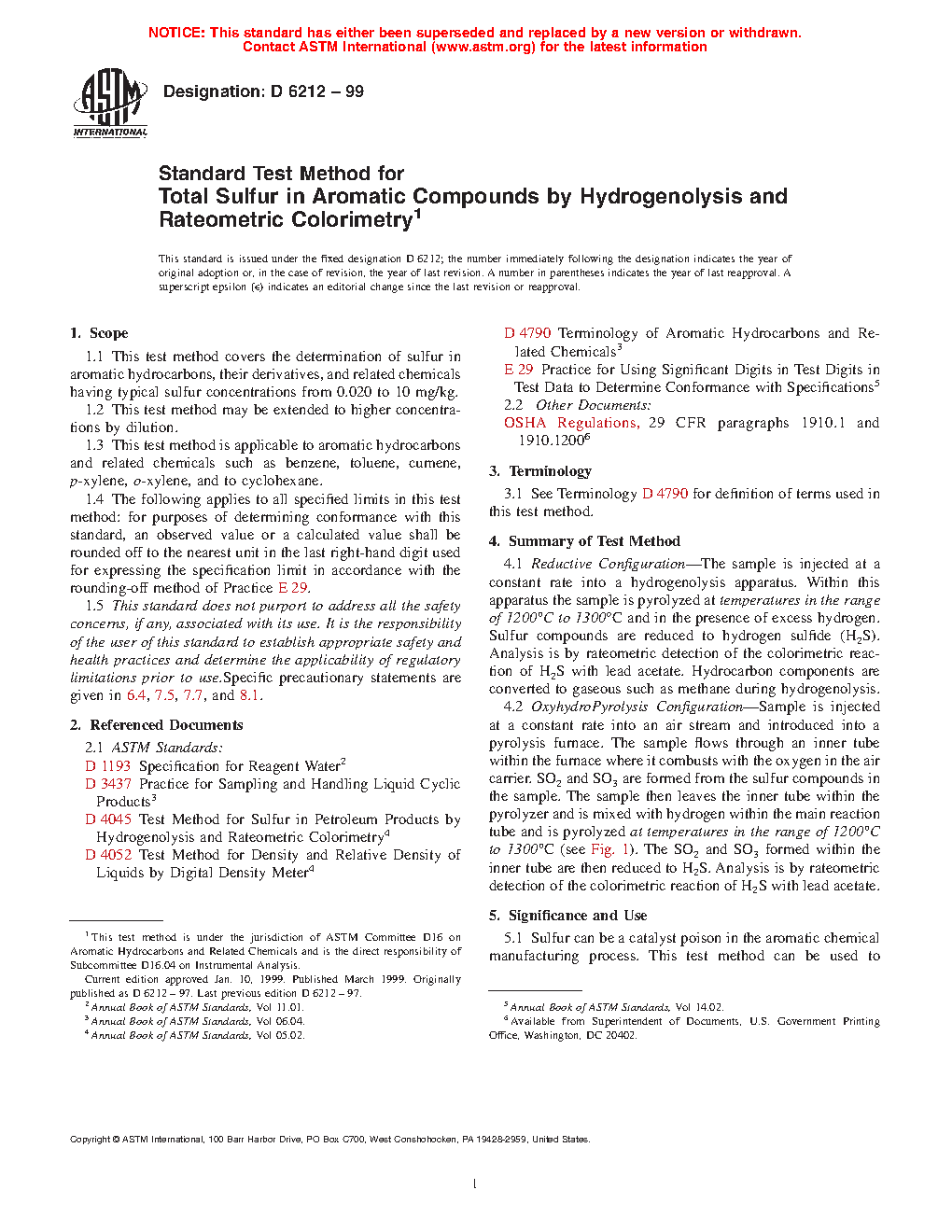 1.1 This test method covers the determination of sulfur in aromatic hydrocarbons, their derivatives, and related chemicals having typical sulfur concentrations from 0.020 to to 10mg/kg.