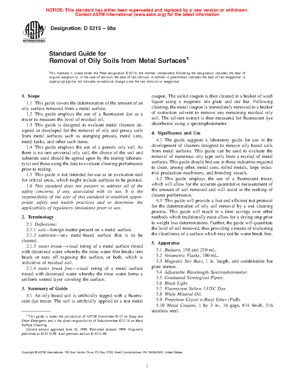 Standard Guide for Removal of Oily Soils from Metal Surfaces (Withdrawn 2004)