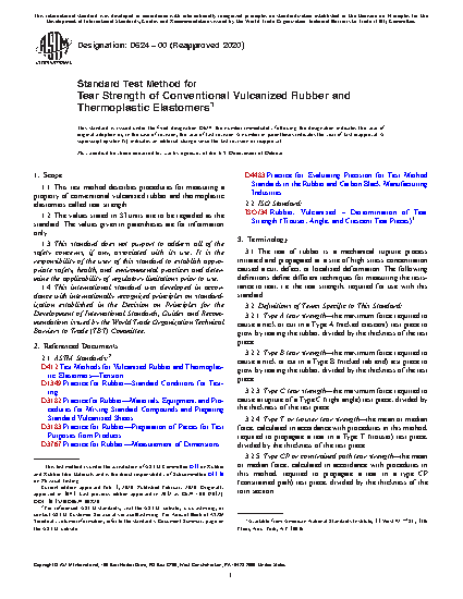 1.1 This test method describes procedures for measuring a property of conventional vulcanized rubber and thermoplastic elastomers called tear strength.
