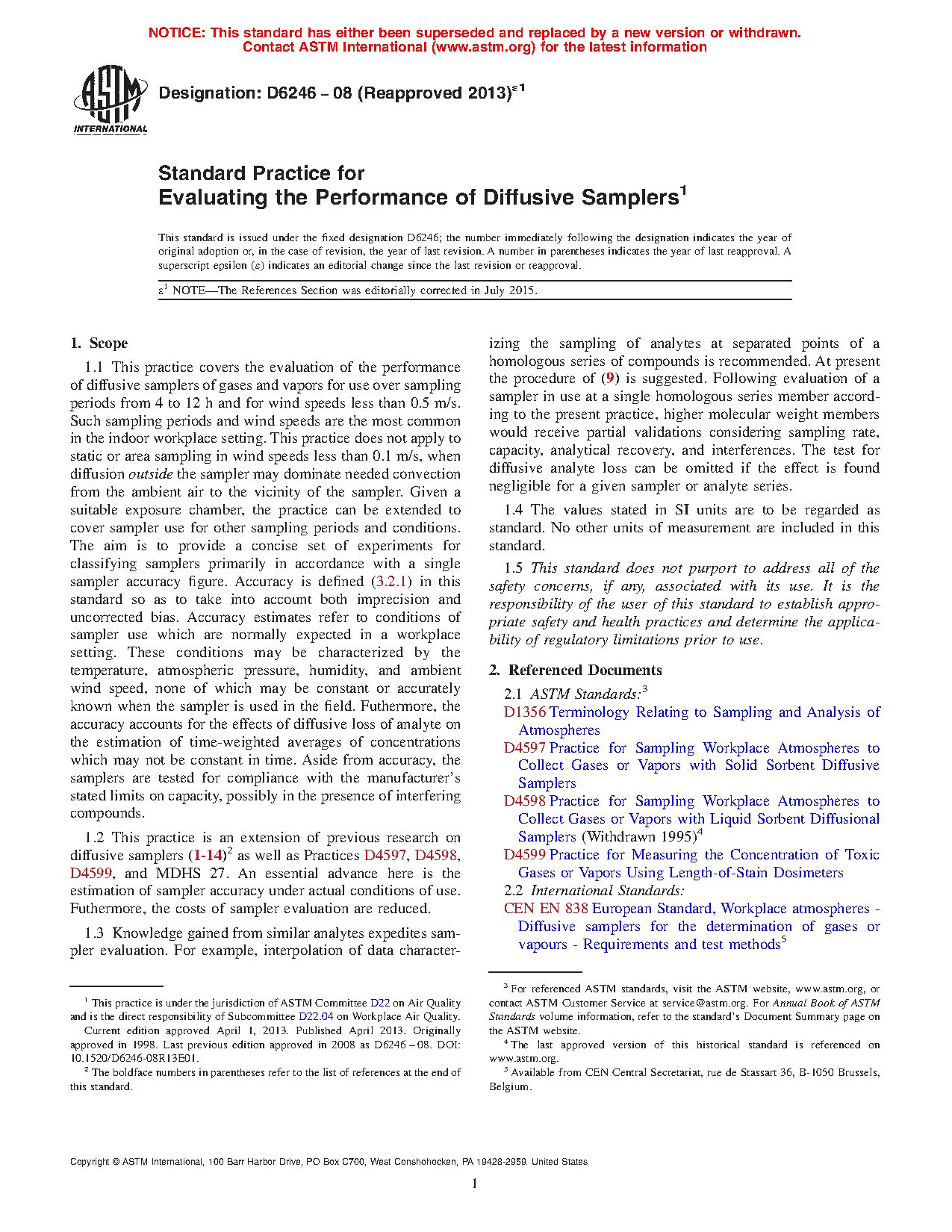 1.2 This practice is an extension of previous research on diffusive samplers (1-13) as well as Practices D 4597, D 4598, D 4599, and MDHS 27. An essential advance here is the estimation of sampler accuracy under actual conditions of use. Furthermore, costs of sampler evaluation are reduced.