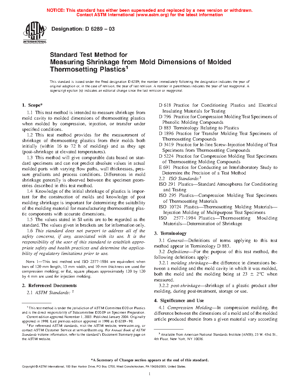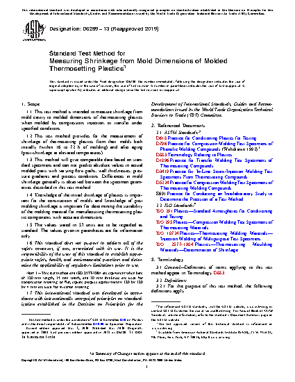 1.4 Knowledge of the initial shrinkage of plastics is important for the construction of molds and knowledge of post molding shrinkage is important for determining the suitability of the molding material for manufacturing thermosetting plastic components with accurate dimensions.