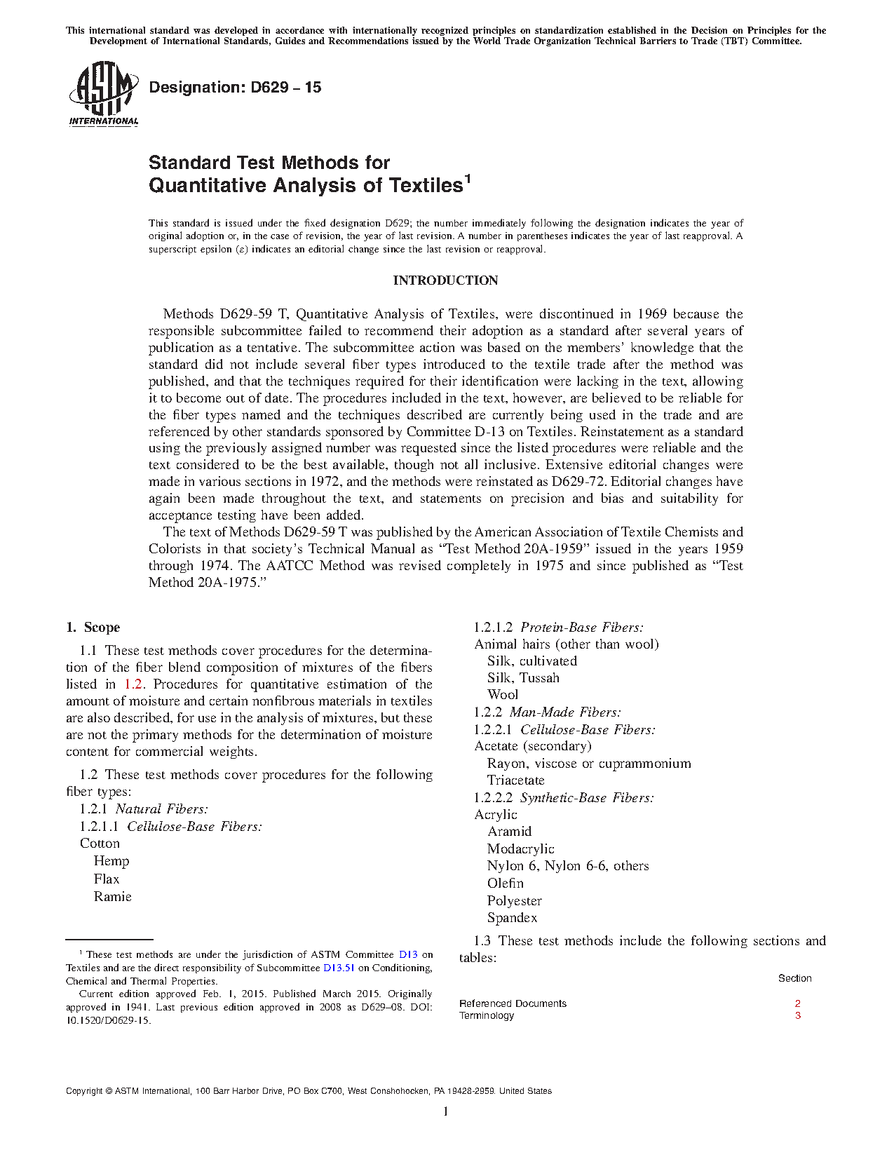 Test Methods D 629 for the determination of quantitative analysis of textiles may be used for acceptance testing of commercial shipments but caution is advised since information on between-laboratory precision is lacking. Comparative tests as directed in 5.1.1 or by Table D 1909 may be advisable.