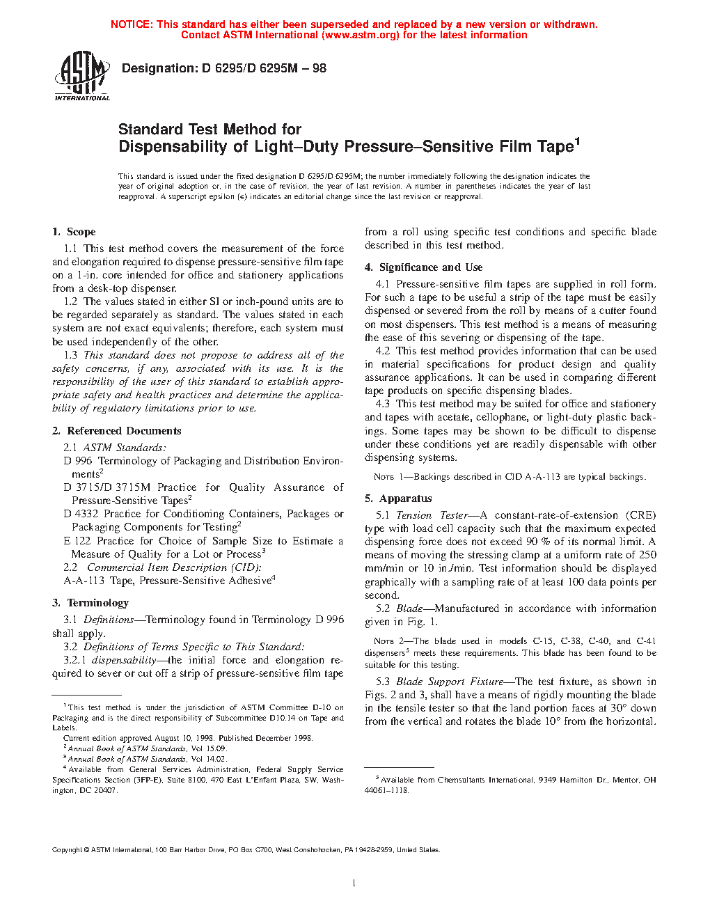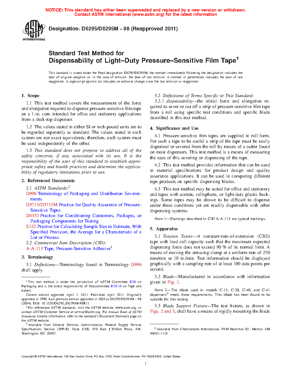 Standard Test Method for Dispensability of Light-Duty Pressure-Sensitive Film Tape