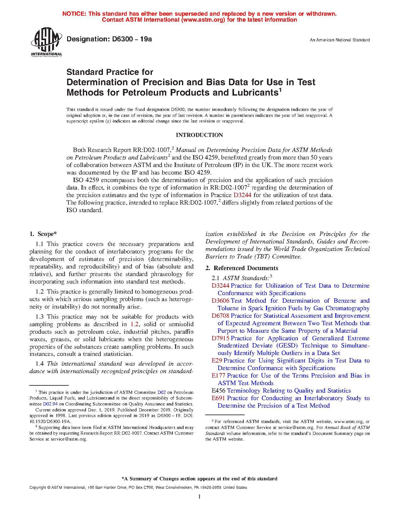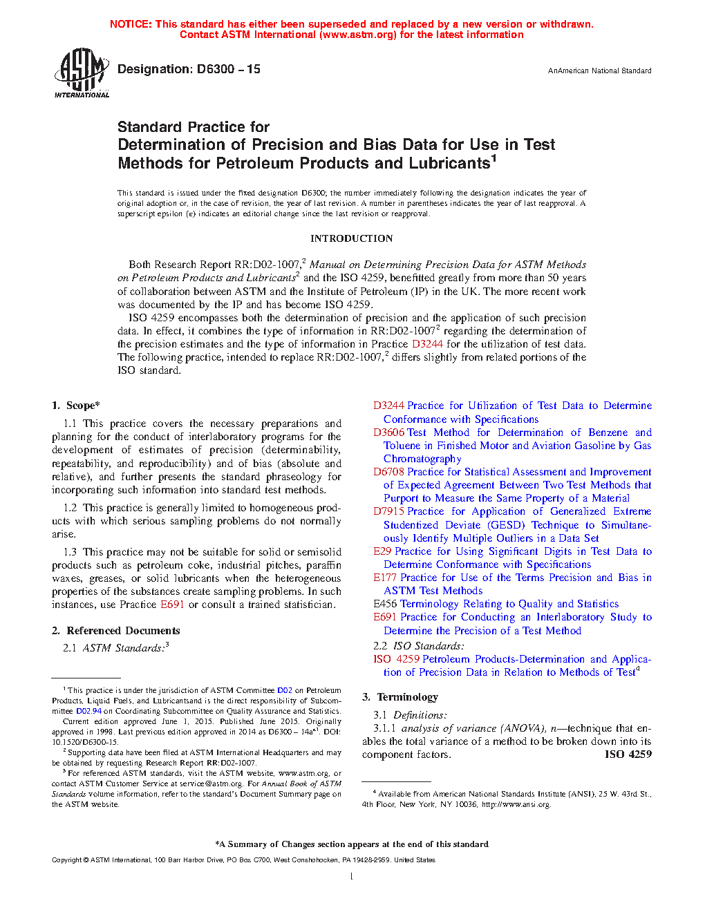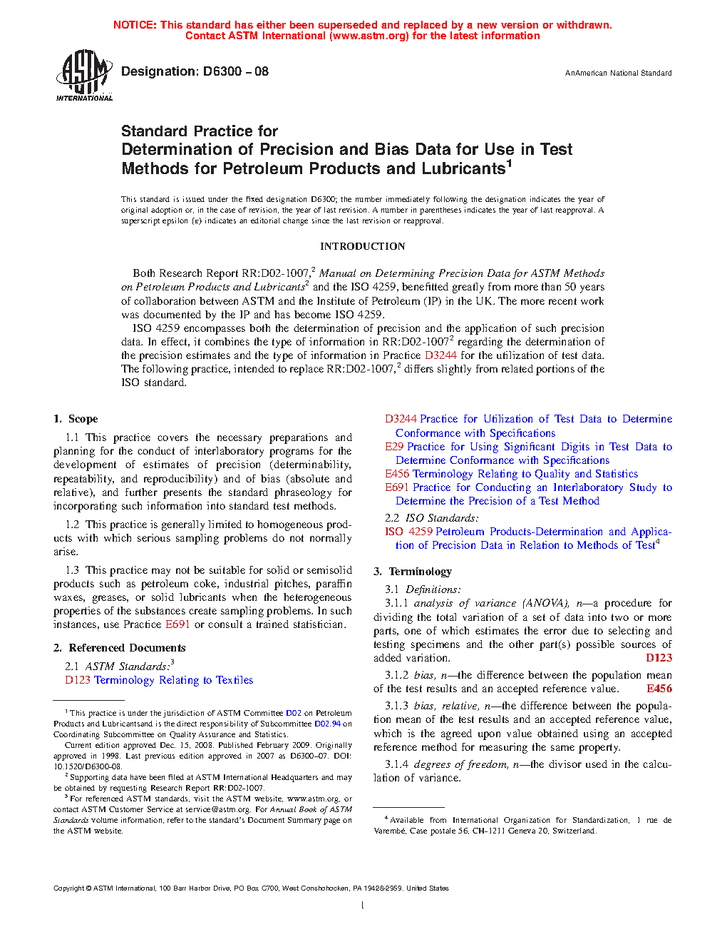 5.4 This practice is intended for use by D02 subcommittees in determining precision estimates and bias statements to be used in D02 test methods. Its procedures correspond with ISO 4259 and are the basis for the Committee D02 computer software, Calculation of Precision Data: Petroleum Test Methods. The use of this practice replaces that of Research Report RR:D02-1007.2