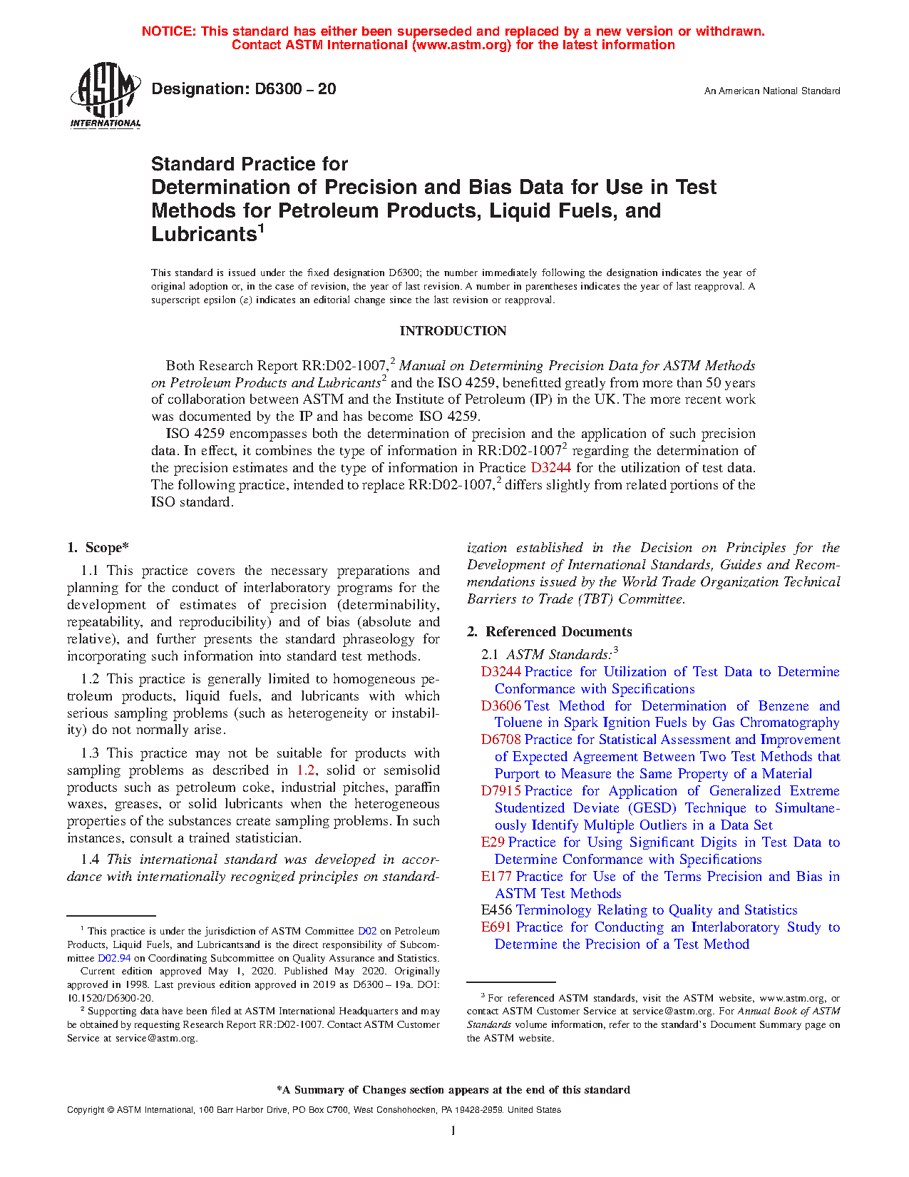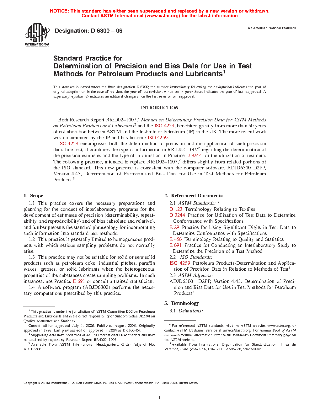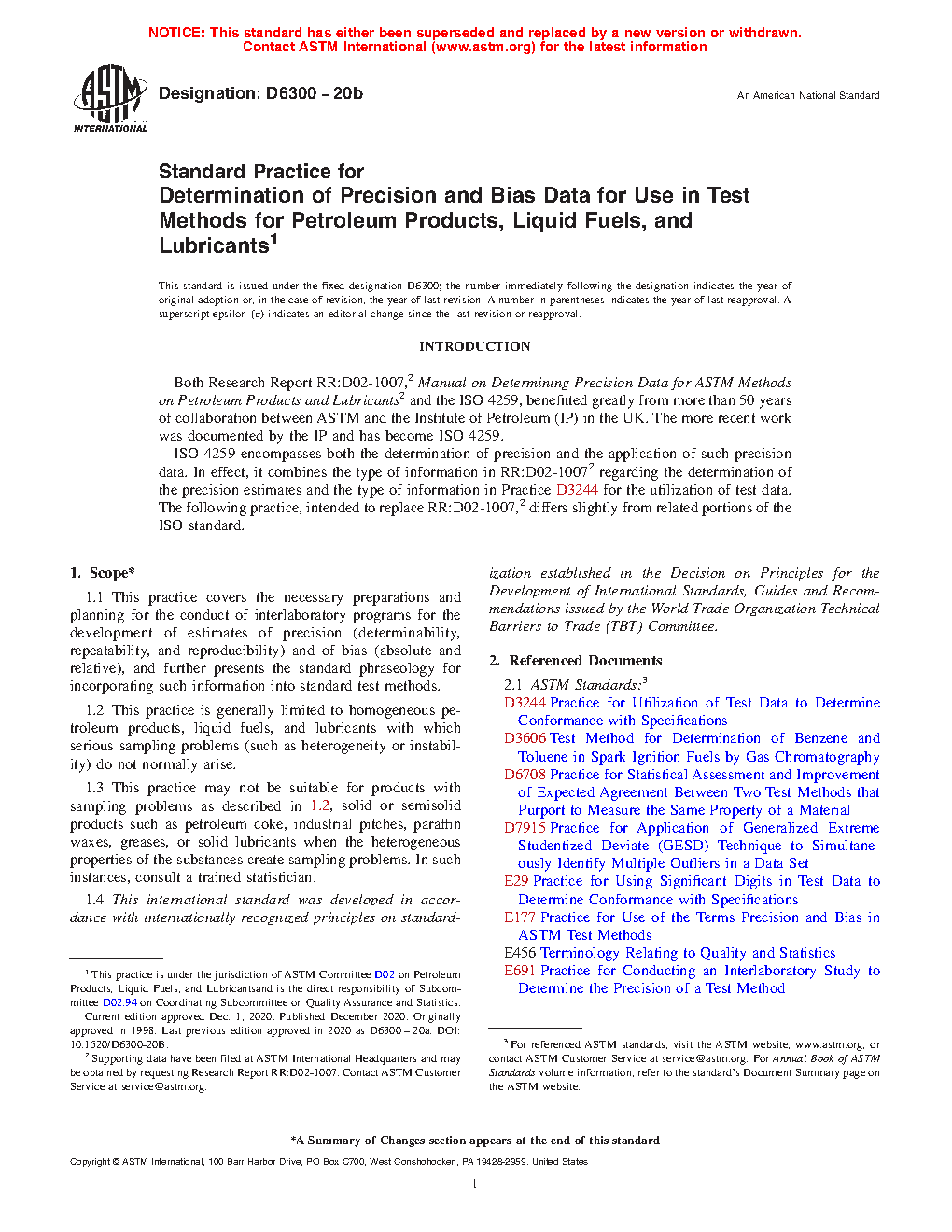 5.4 This practice is intended for use by D02 subcommittees in determining precision estimates and bias statements to be used in D02 test methods. Its procedures correspond with ISO 4259 and are the basis for the Committee D02 computer software, Calculation of Precision Data: Petroleum Test Methods. The use of this practice replaces that of Research Report RR:D02-1007.2