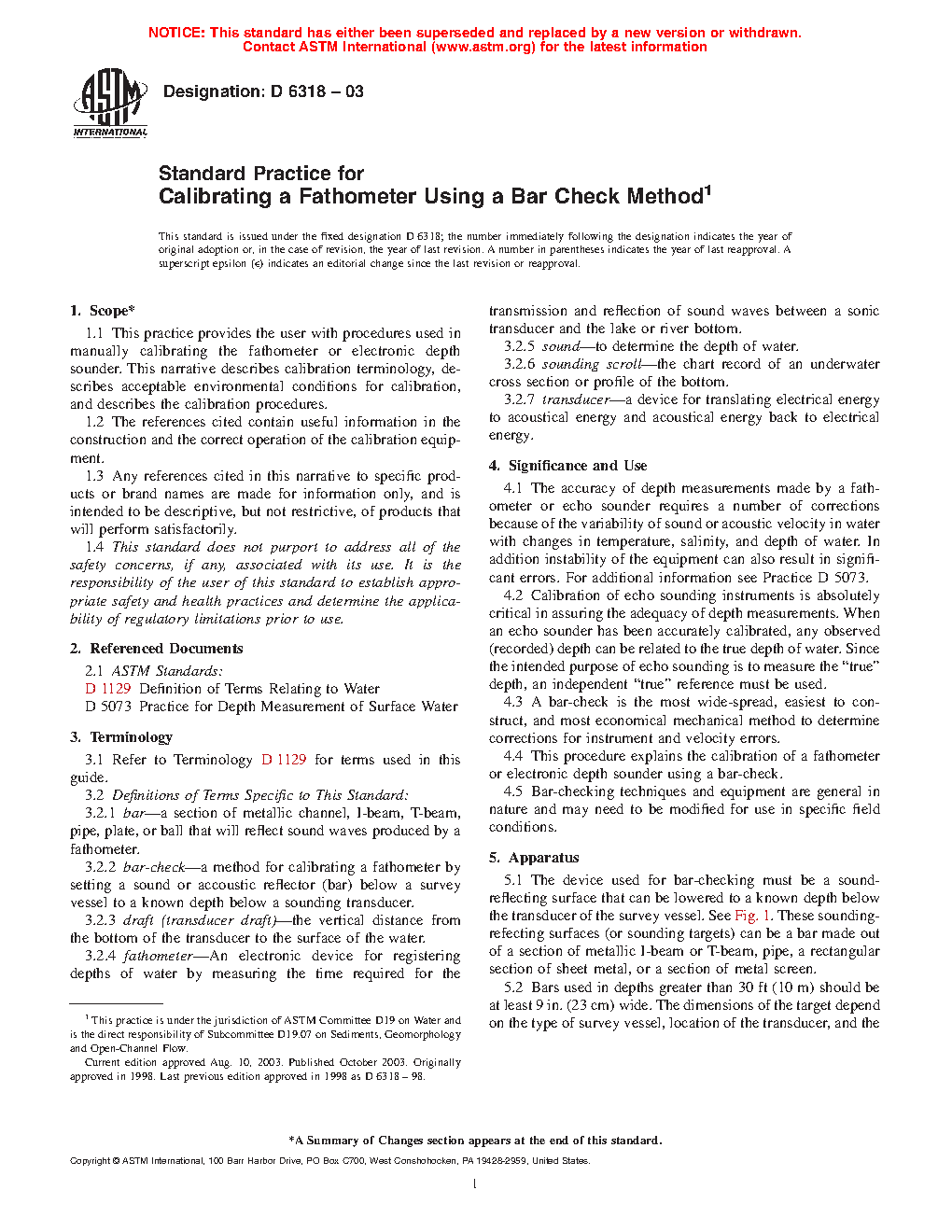 4.4 This procedure explains the calibration of a fathometer or electronic depth sounder using a bar-check.