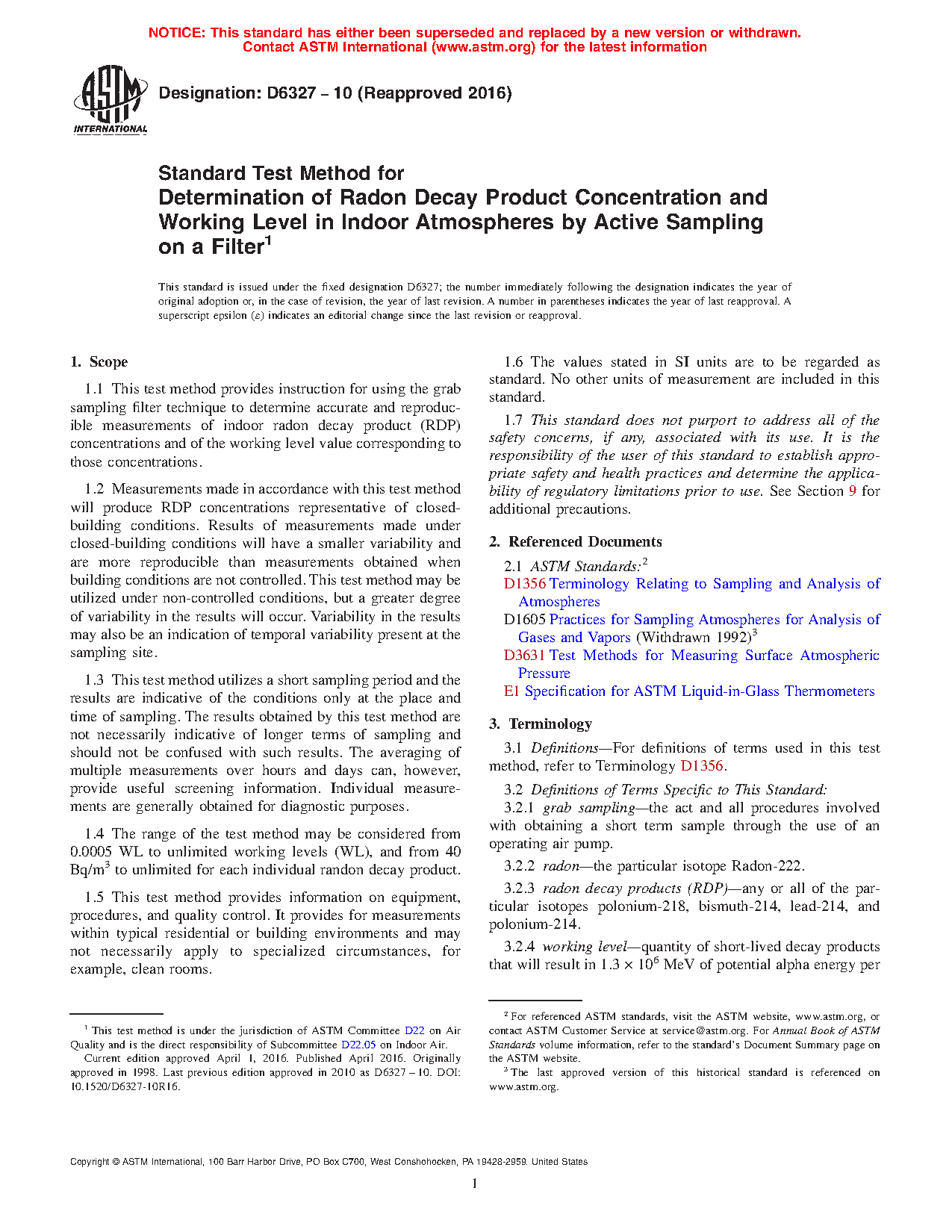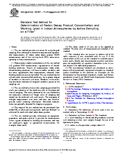 1.2 Measurements made in accordance with this test method will produce RDP concentrations representative of closed-building conditions. Results of measurements made under closed-building conditions will have a smaller variability and are more reproducible than measurements obtained when building conditions are not controlled. This test method may be utilized under non-controlled conditions, but a greater degree of variability in the results will occur. Variability in the results may also be an indication of temporal variability present at the sampling site.