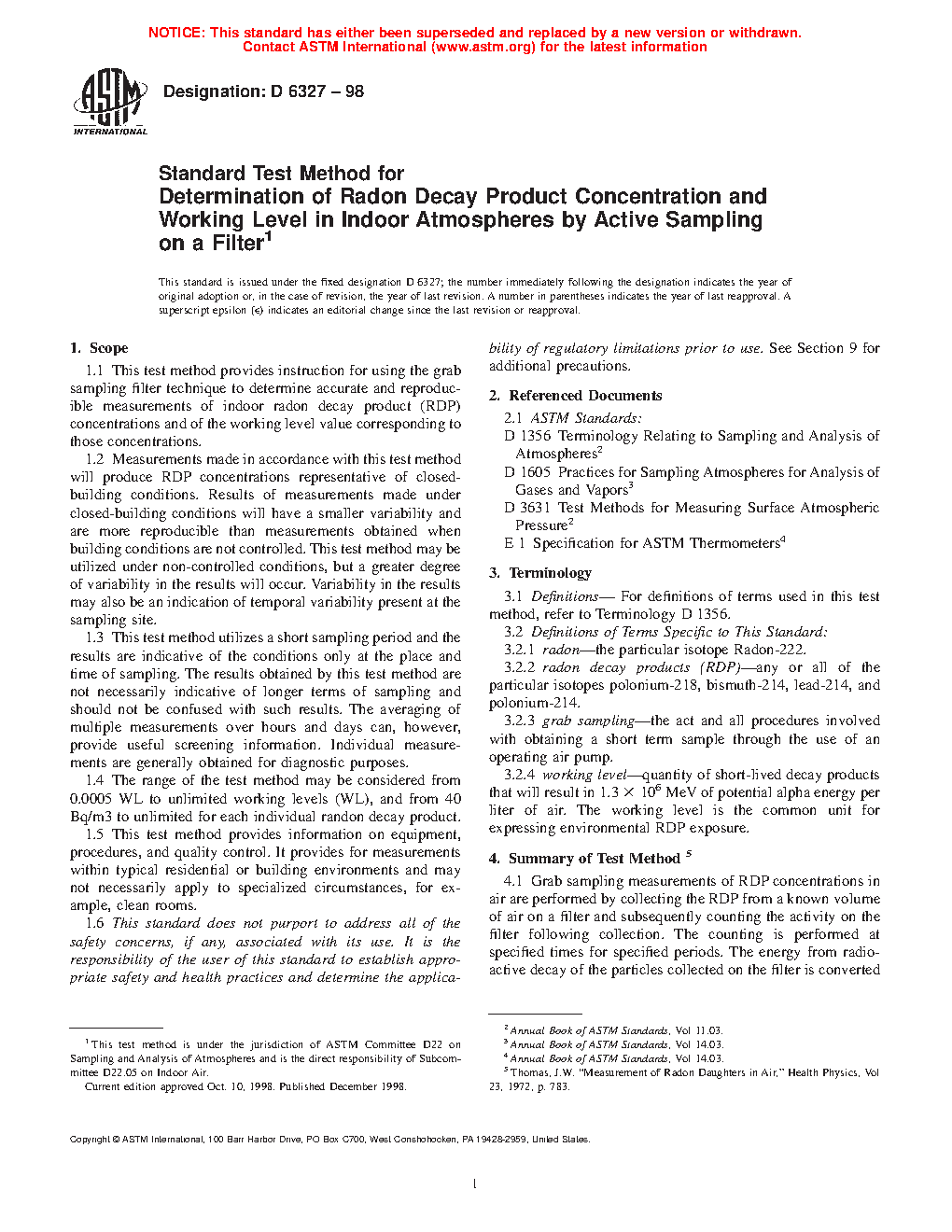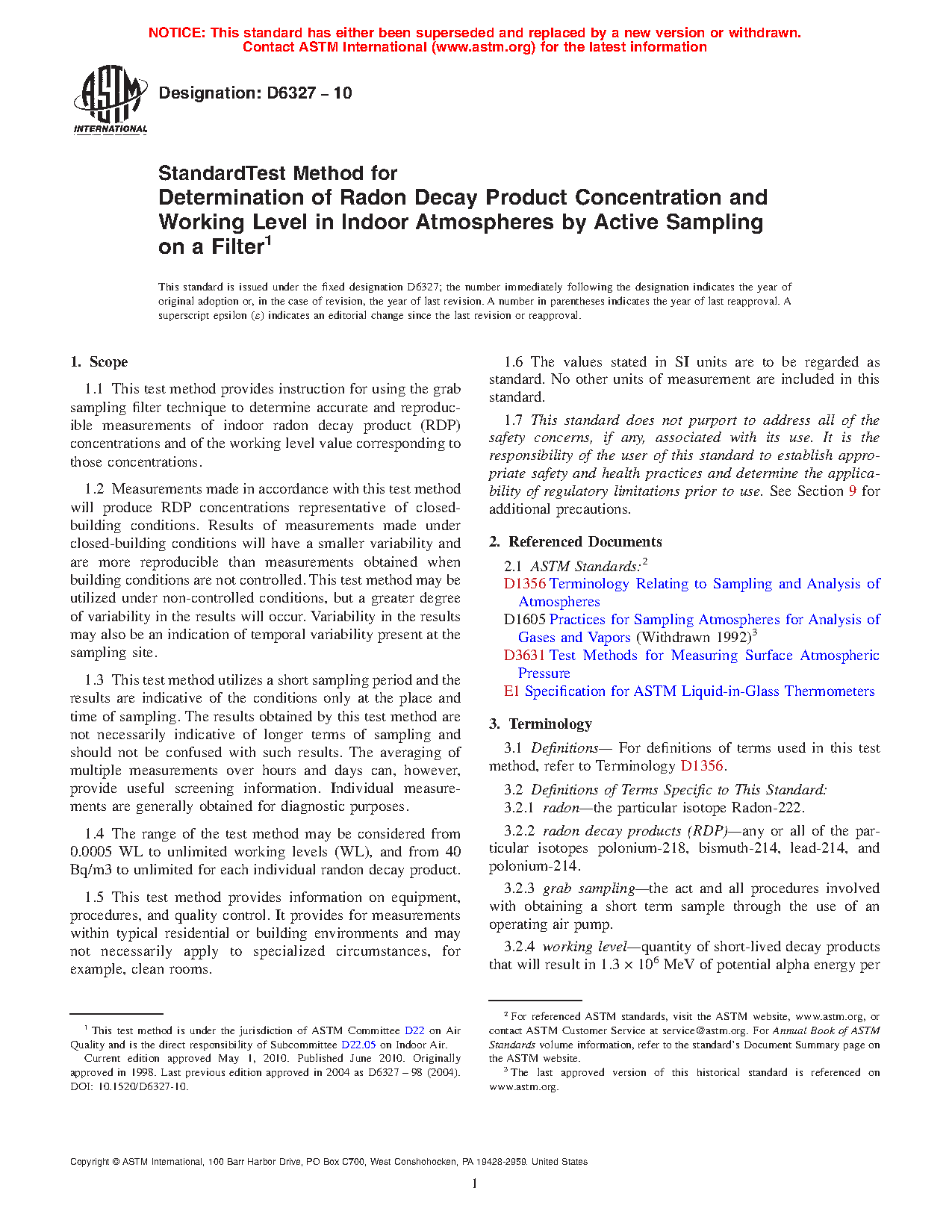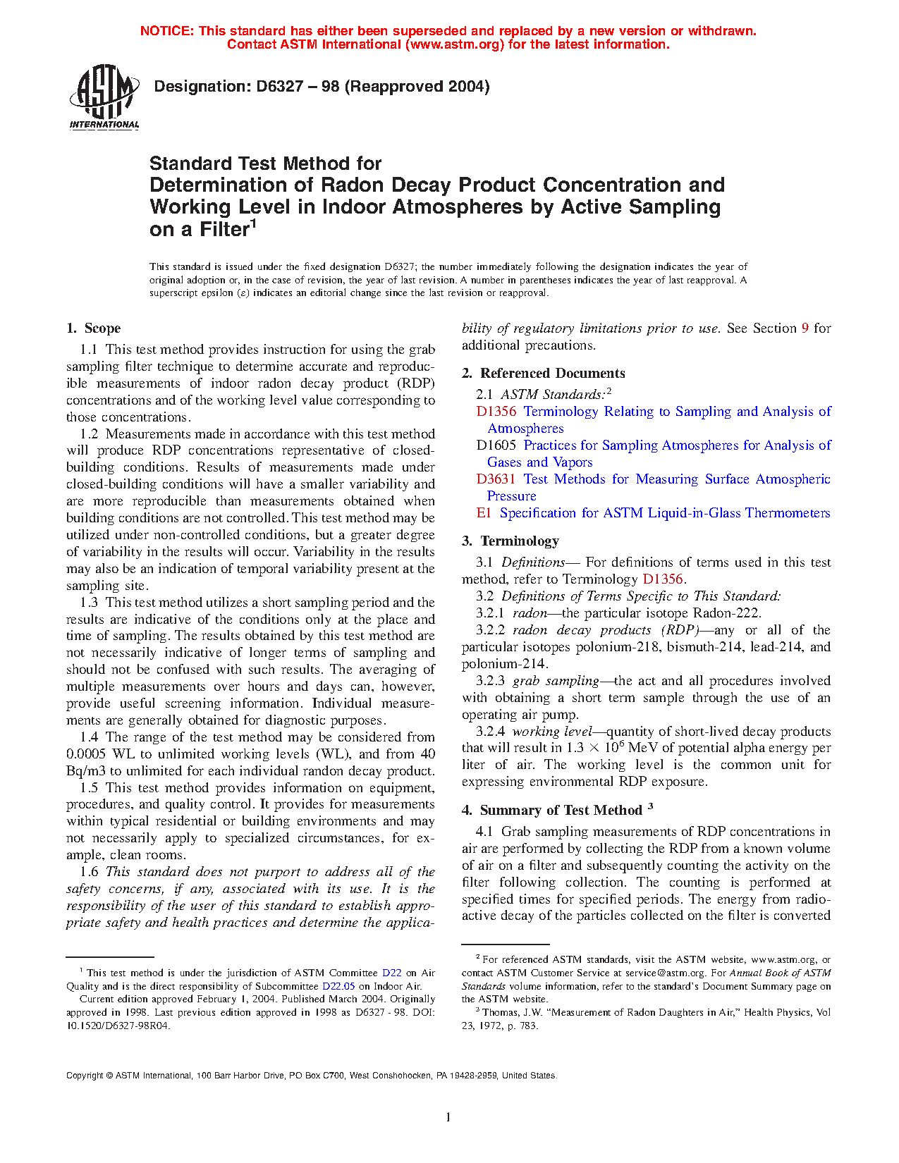 1.4 The range of the test method may be considered from 0.0005 WL to unlimited working levels (WL), and from 40 Bq/m3 to unlimited for each individual randon decay product.