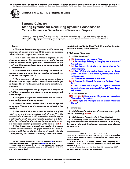 1.1 This guide describes testing systems used for measuring responses of carbon monoxide (CO) alarms or detectors subjected to gases, vapors, and their mixtures.