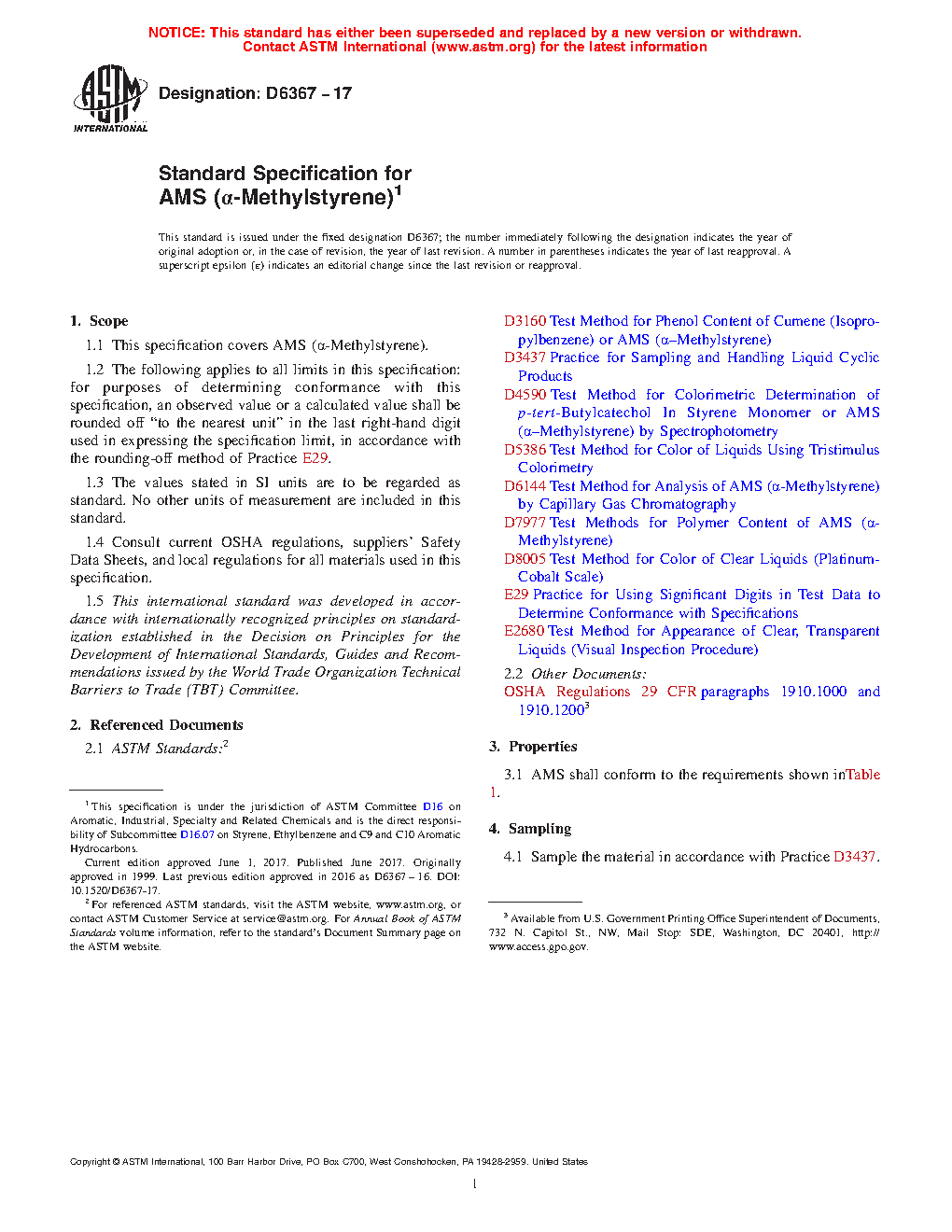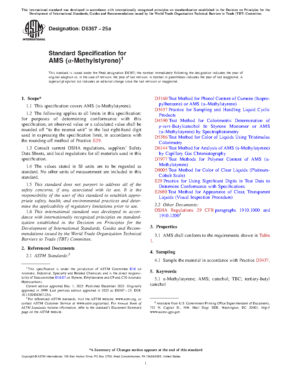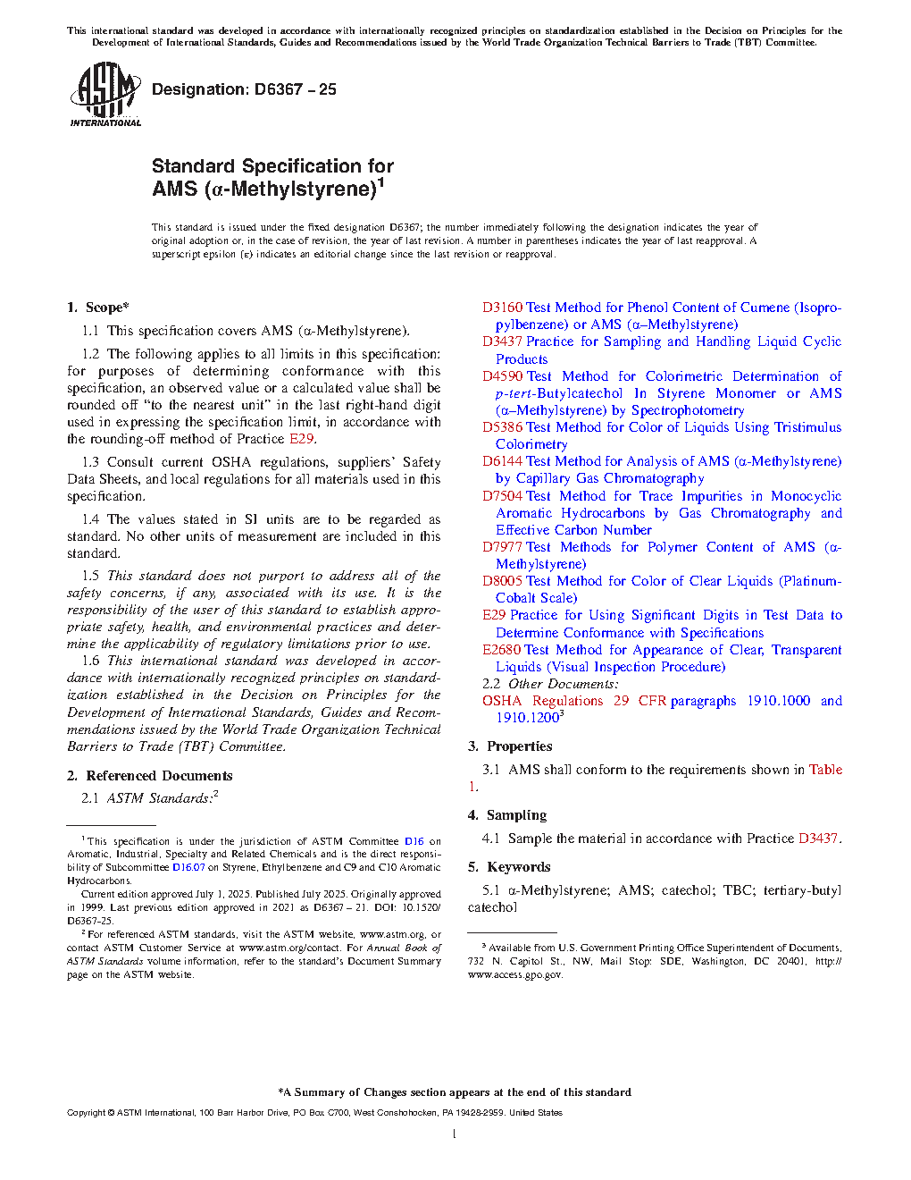 1.1 This specification covers AMS (a-Methylstyrene).