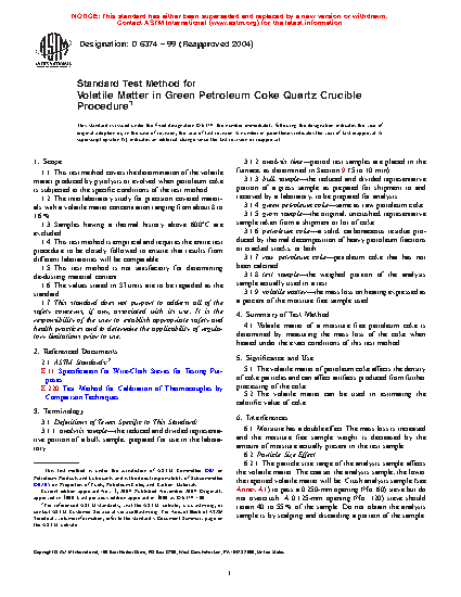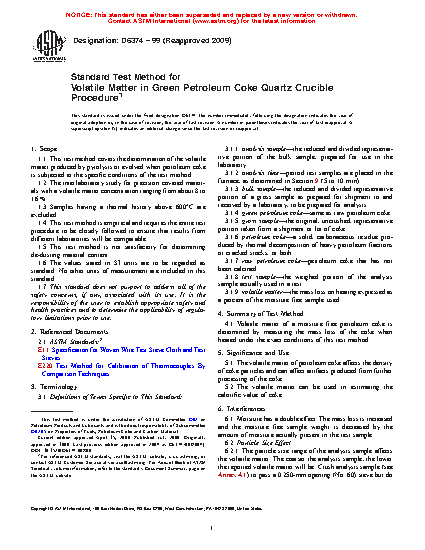 1.1 This test method covers the determination of the volatile matter produced by pyrolysis or evolved when petroleum coke is subjected to the specific conditions of the test method.